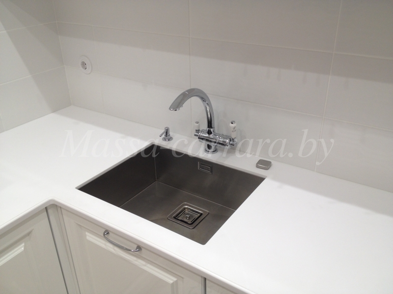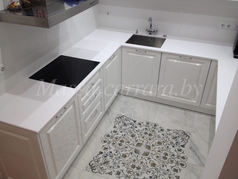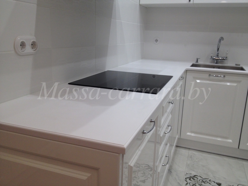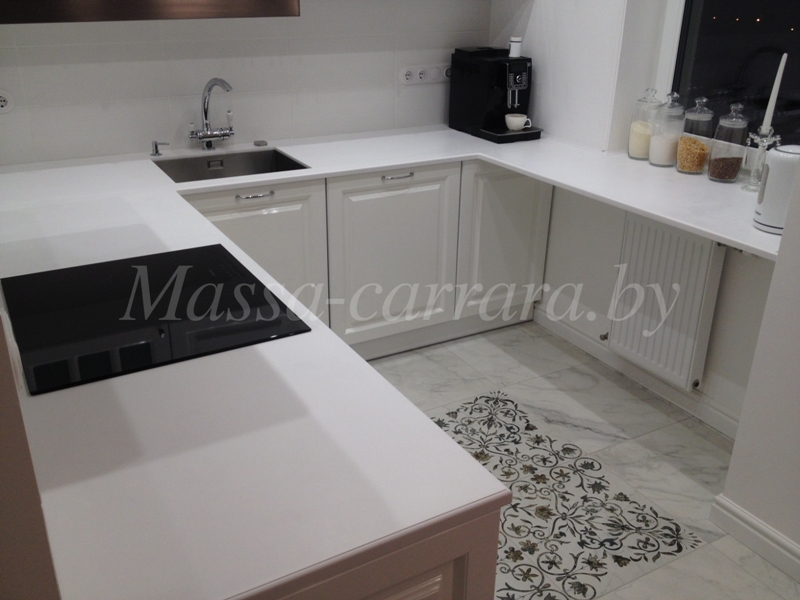 код 80665П-образная столешница с вырезами под мойку и варочную панель. Искусственный камень с матовой поверхностью.