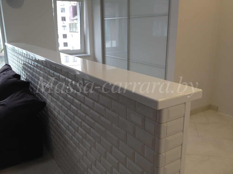 код 80759Белый искусственный камень с глянцевым покрытием. Узкая длинная конструкция.