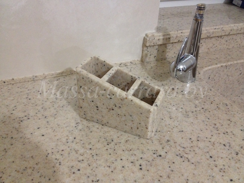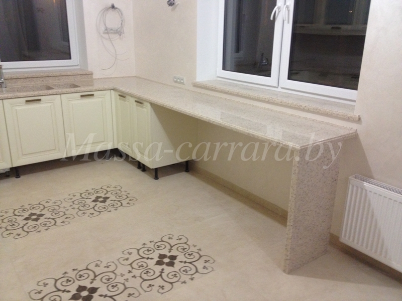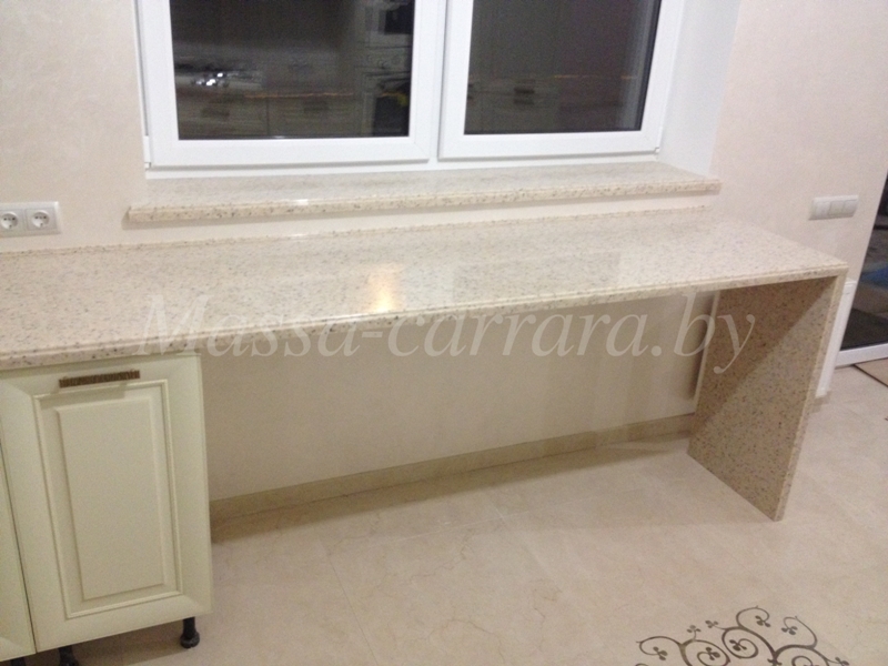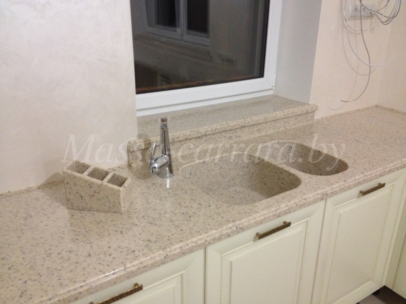 Столешница из искусственного камня бежевого цвета с черными вкраплениями