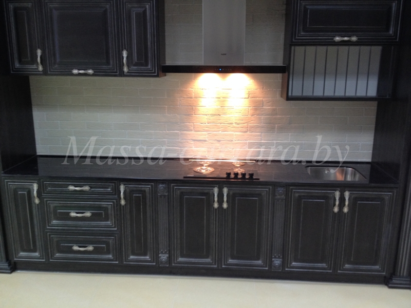 Цельная темная столешница с вырезами