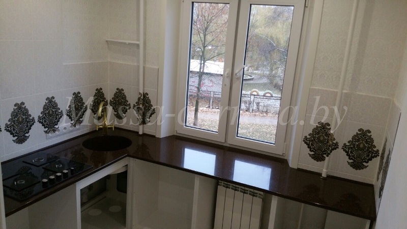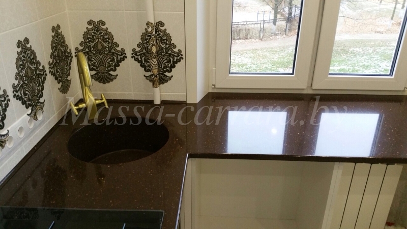код 80671Угловая столешница из искусственного камня. Цвет: глянцевый коричневый.