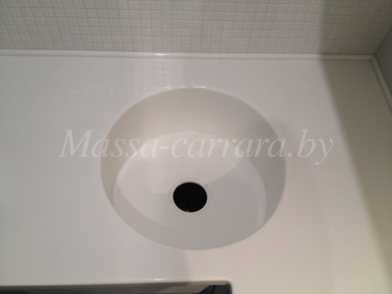 код 80664Угловая столешница с круглой мойкой. Искусственный камень белого цвета.