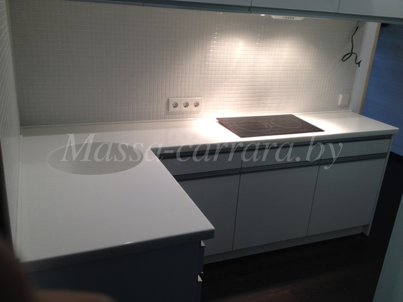 Угловая столешница из искусственного белого камня