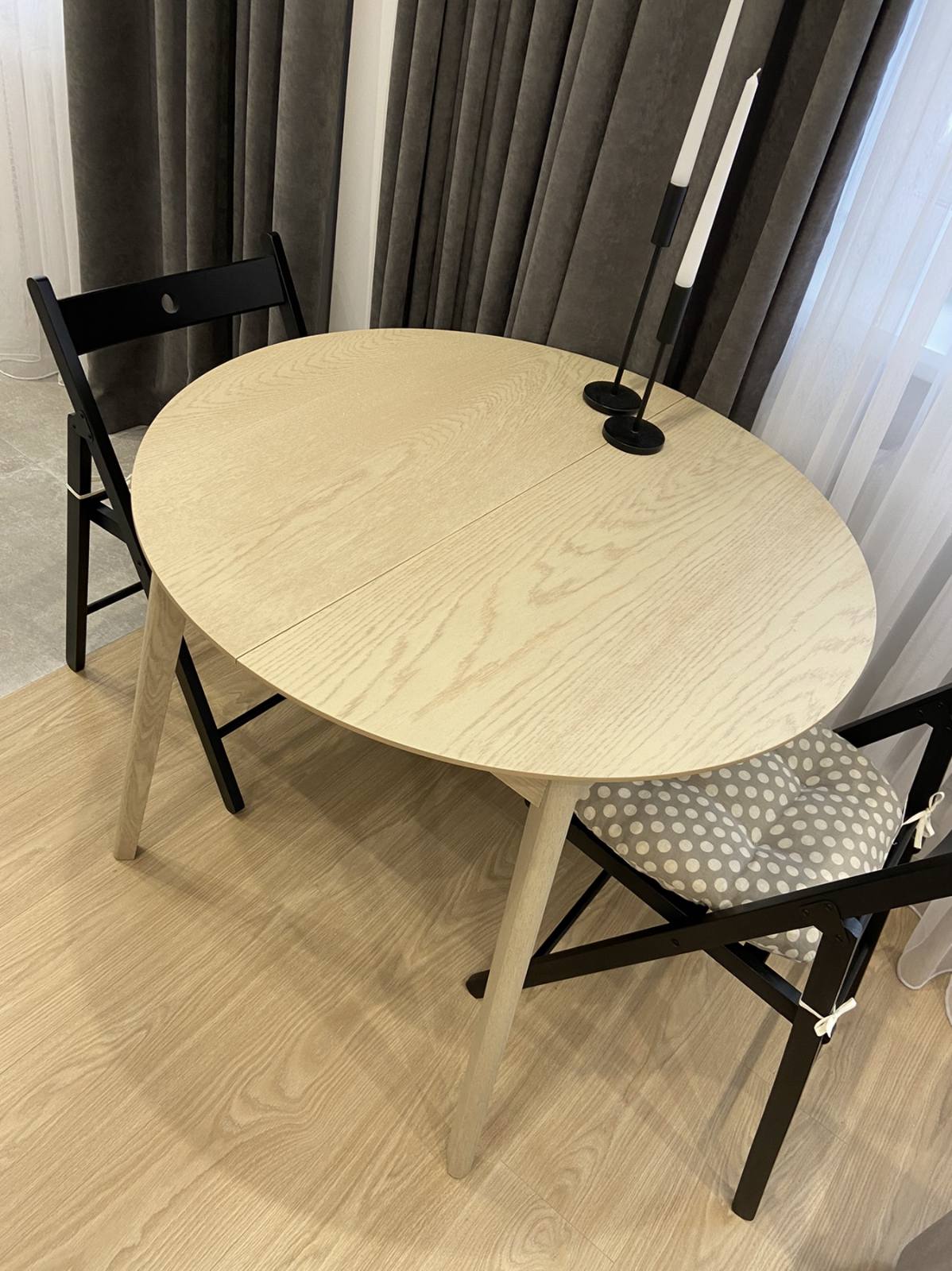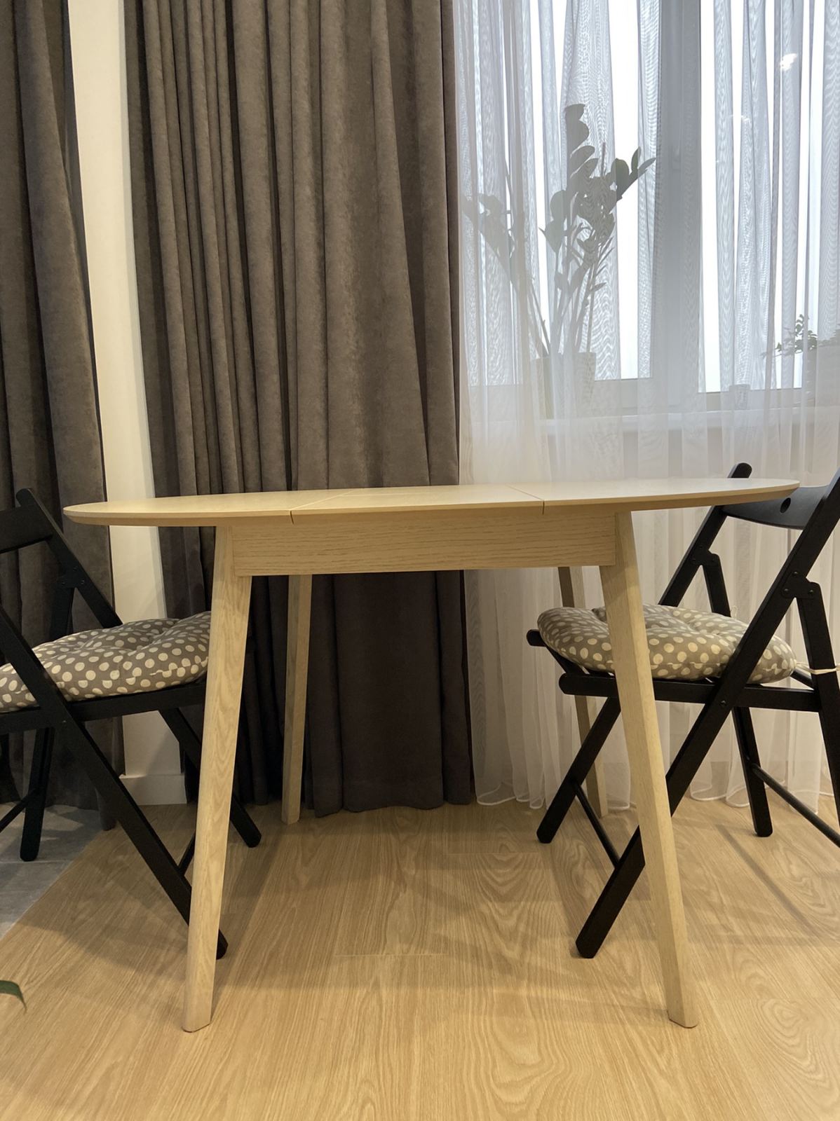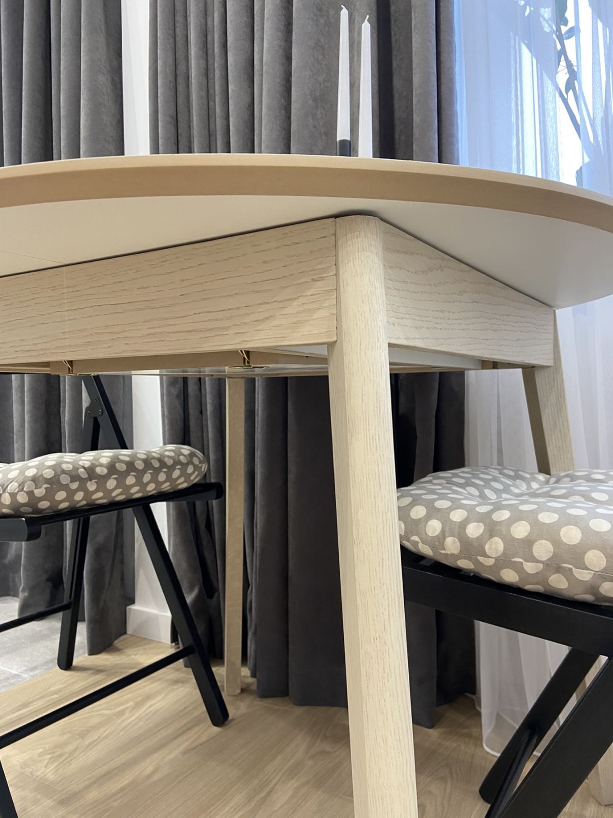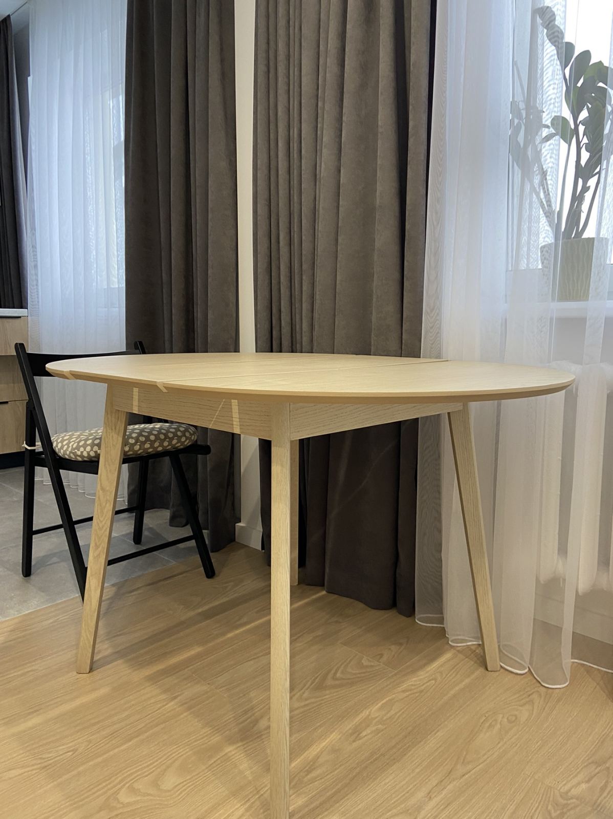 код 132265Размер: d900+330. Ножки: массив дуба. Столешница: натуральный шпон дуба+мдф.