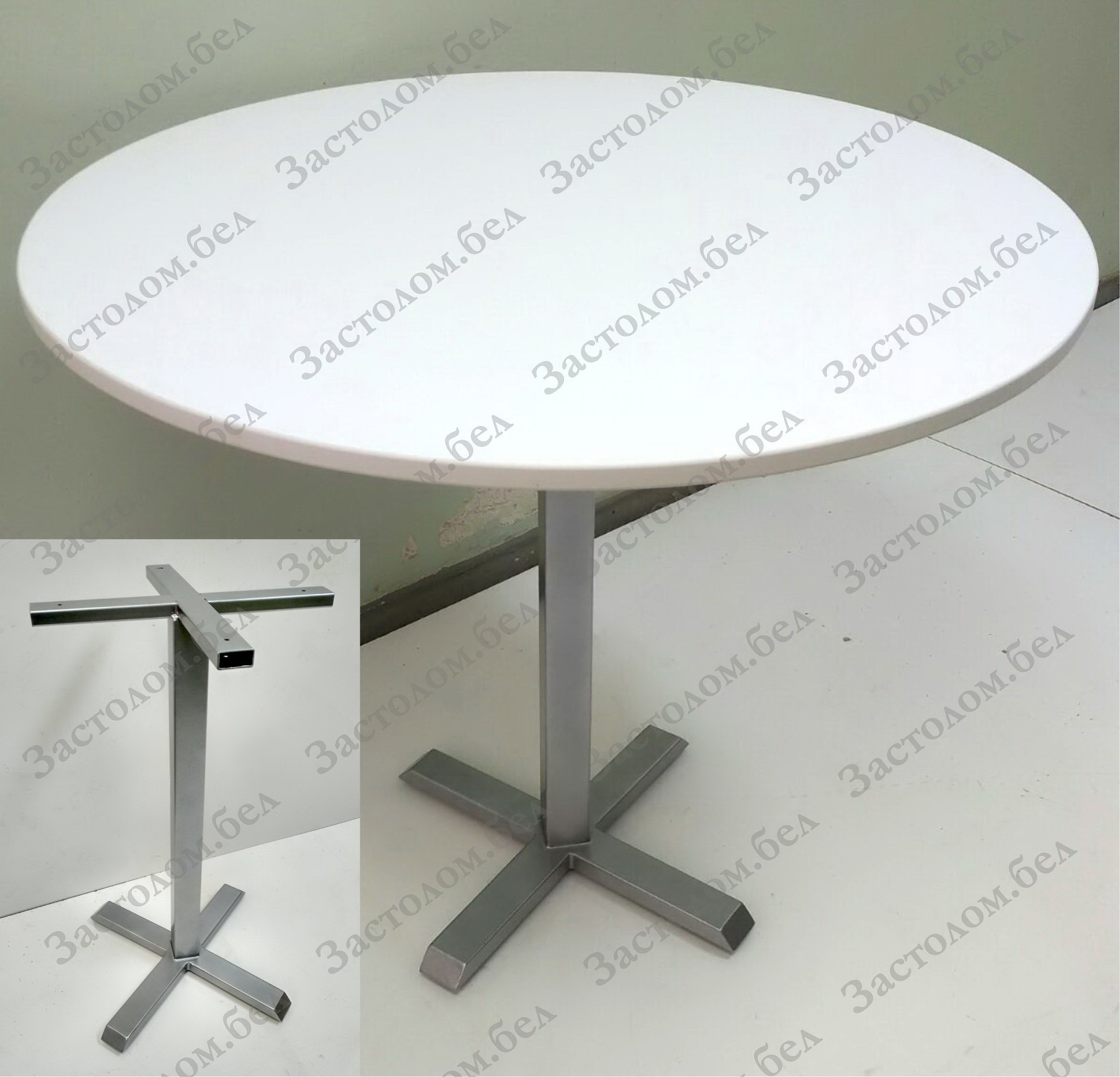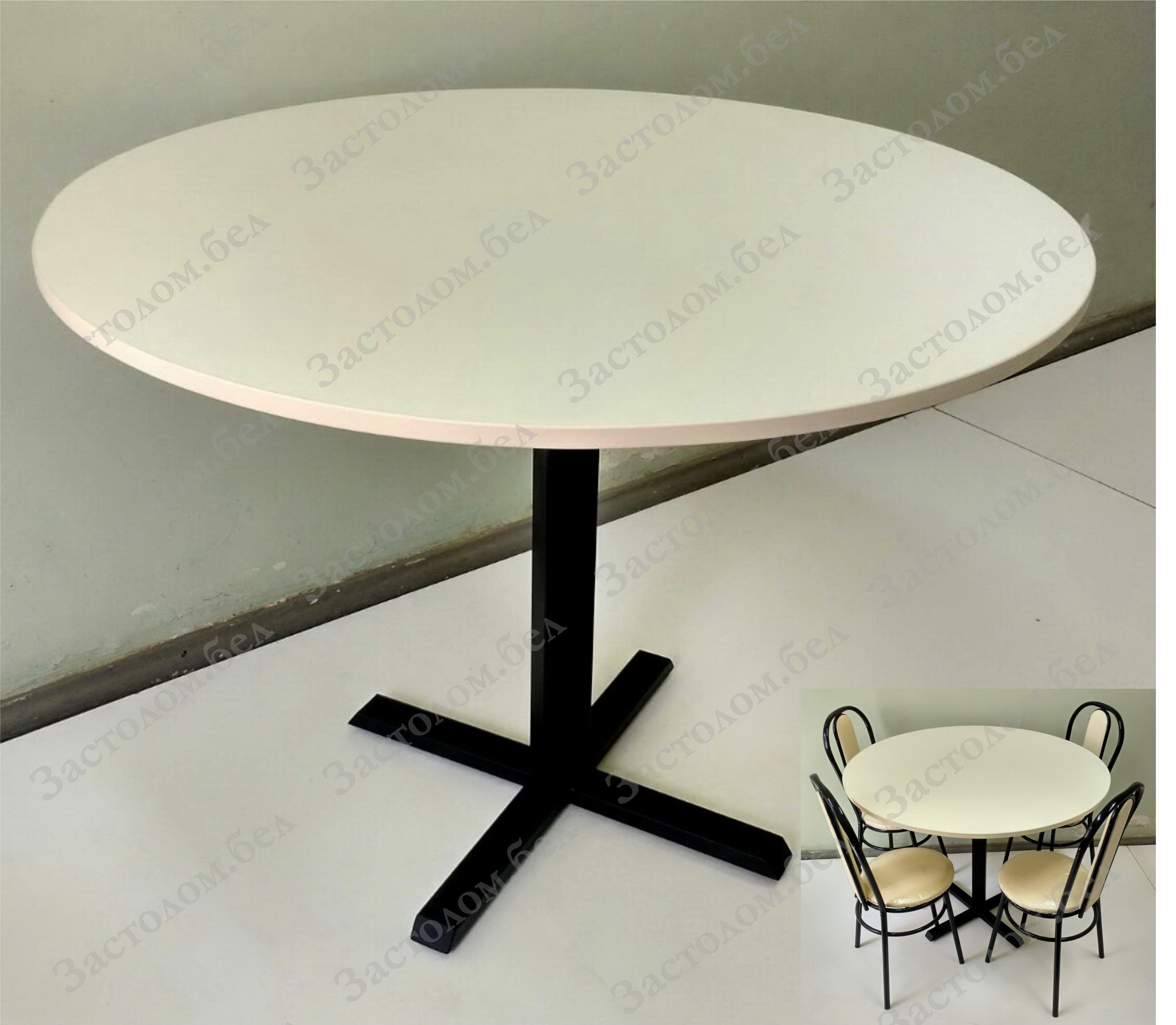 Круглый стол на цельносварной раме серии "Т" из постформинга, ЛДСП или массива дуба