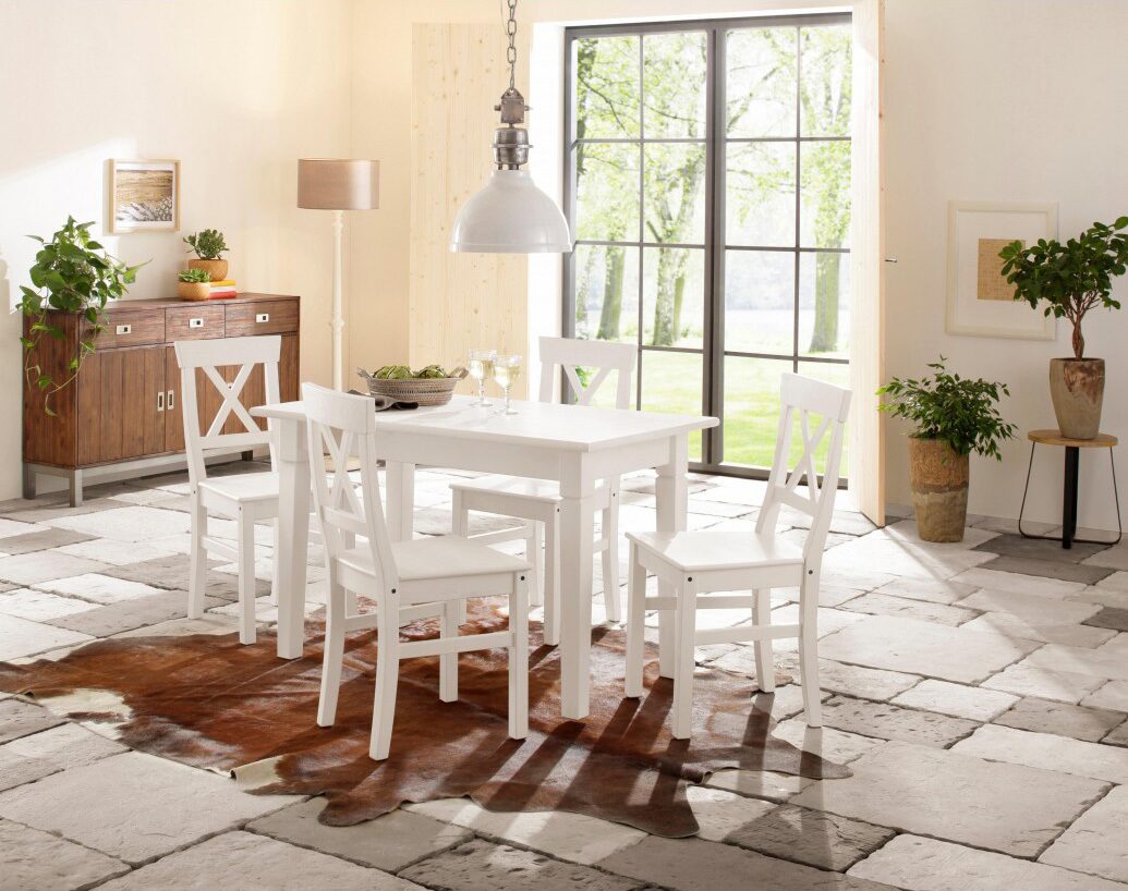 - Прочный материал: стол и стулья изготовлены из массива сосны. Этот материал отличается высокой прочностью и долговечностью, что гарантирует долгий срок службы набора.