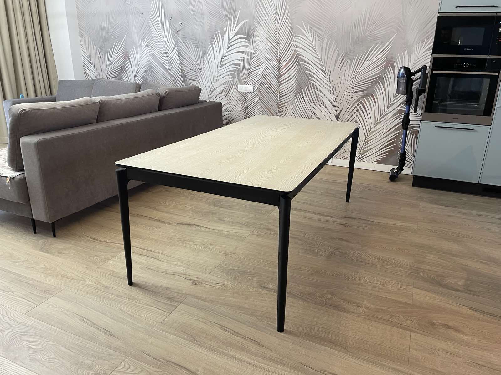 Столешница: крашенный МДФ. Изогнутые ножки из массив дуба. Система разложения «бабочка».