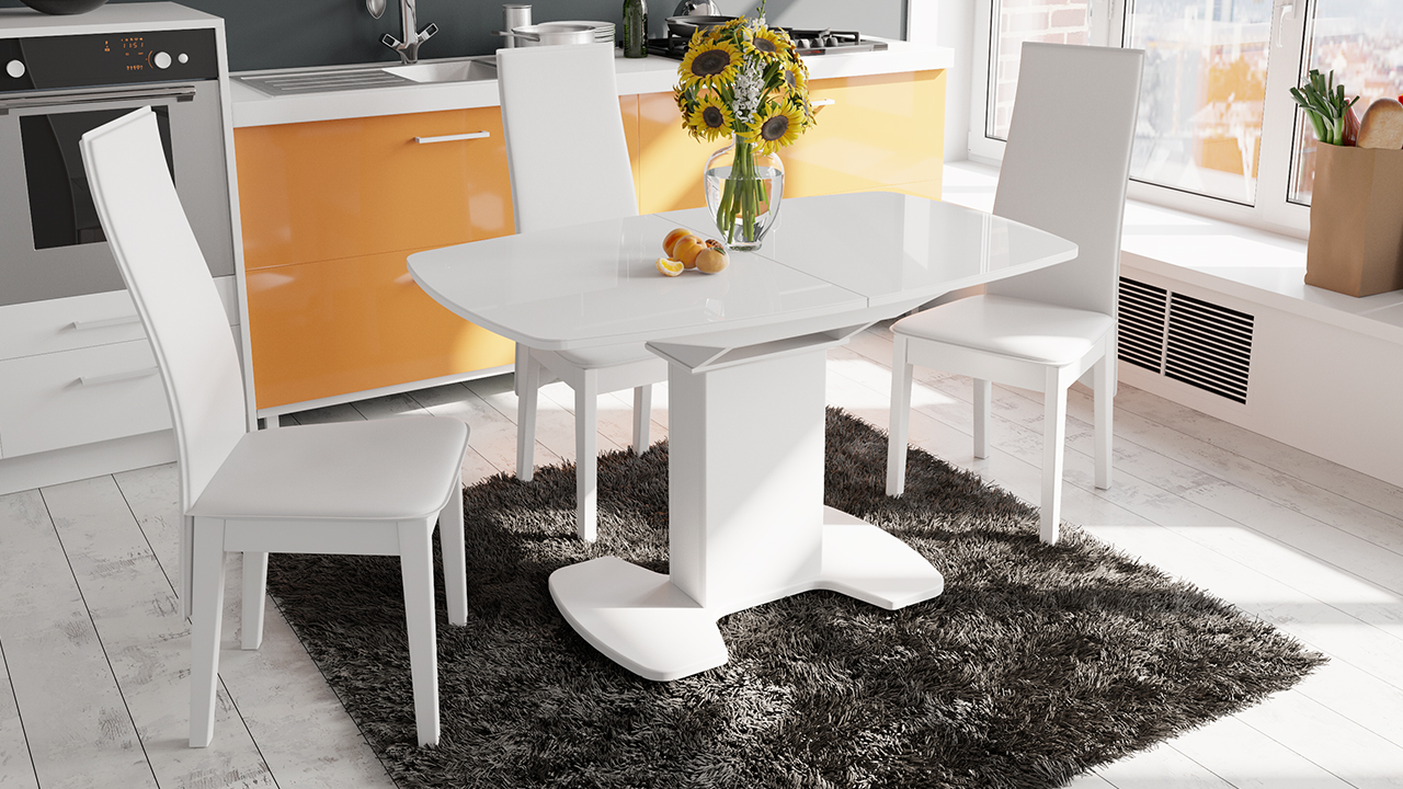 Обеденный стол Портофино 1300x800x750мм Белый глянец/Стекло белое СМ(ТД)-105.02.11(1)