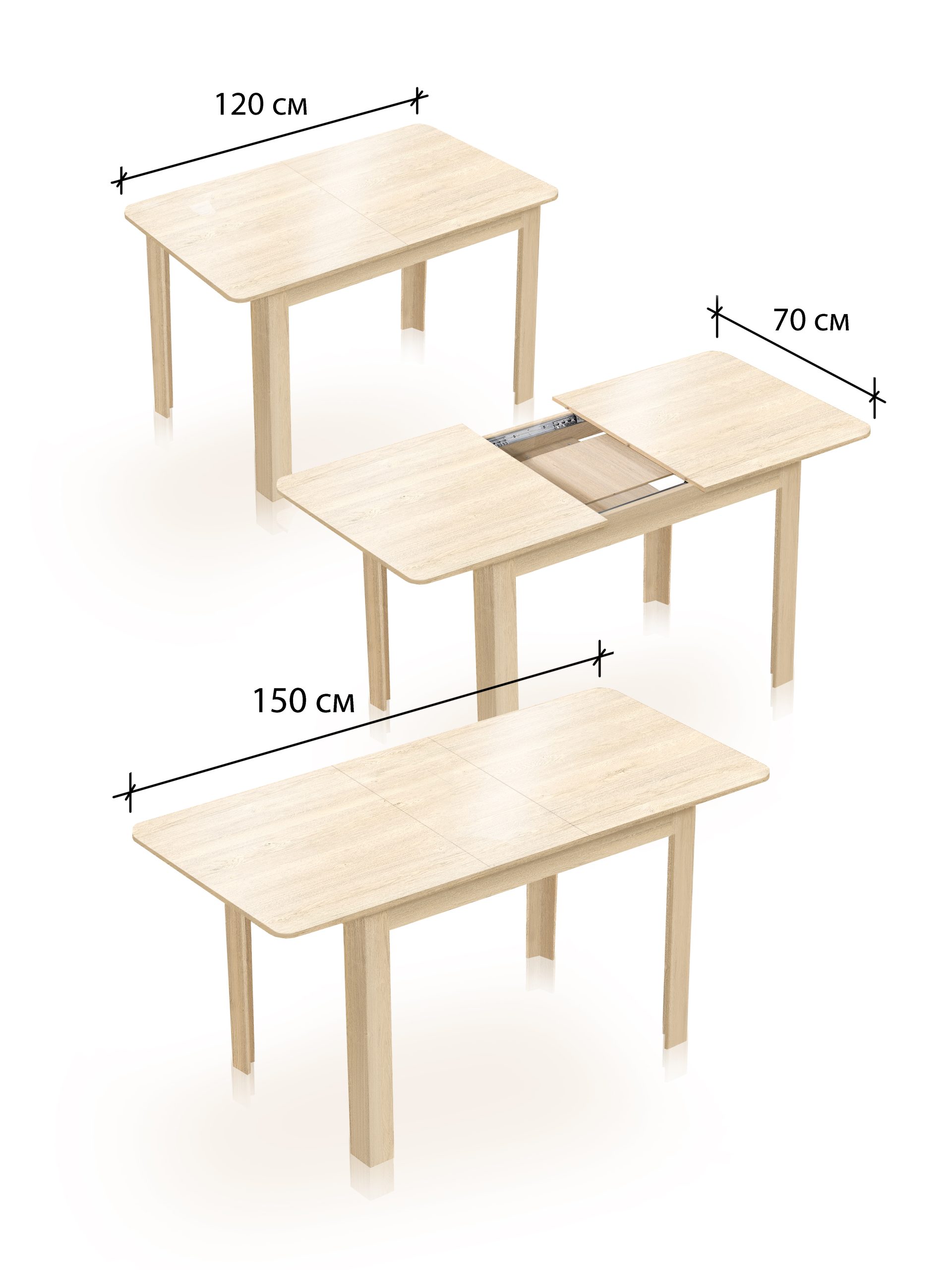 Данная модель отличная находка для повседневного использования и для праздников. Вмещает в себя до 8 человек в разложаннном виде. Производится также в цвете Дуб крафт белый. Стол часто покупают со скамьей кухонной угловой в таком же цветовом исполнении.