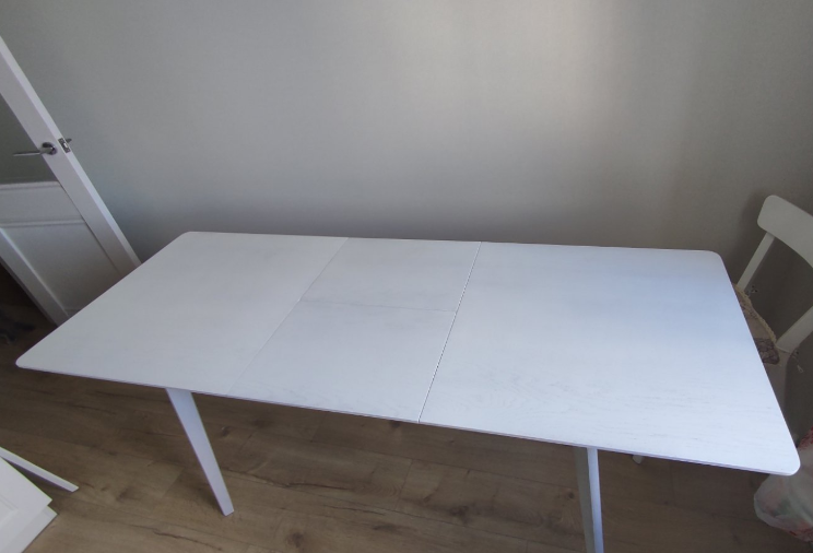 Раздвижной обеденный стол в белой эмали