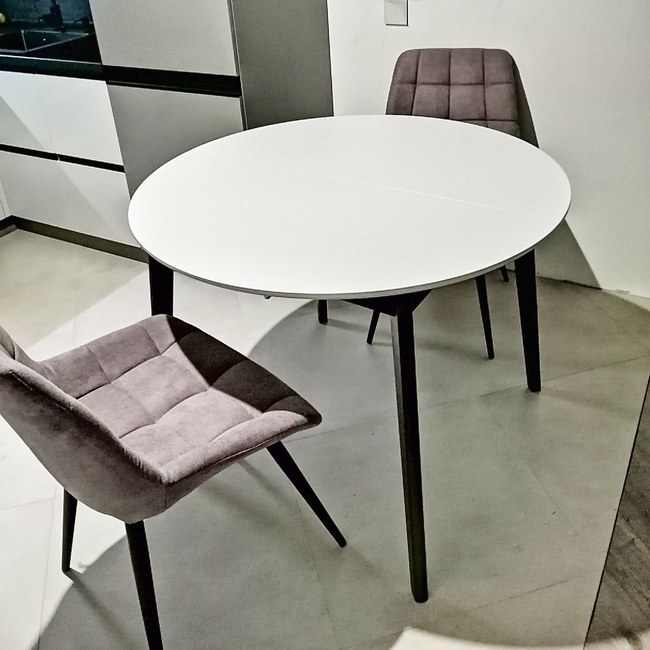 Стол «РАУНД» керамика 2 кат. Д 1100, Камень белый Elyt pulido/ Черный матовый