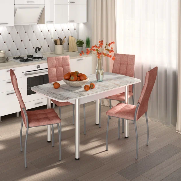 Раздвижной стол «Флорида См-2» Белый корп. Ножки серебро.кругл