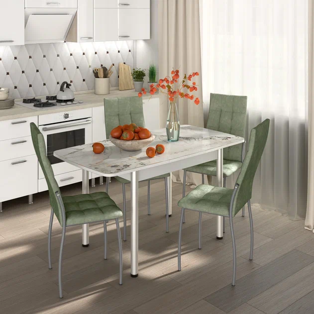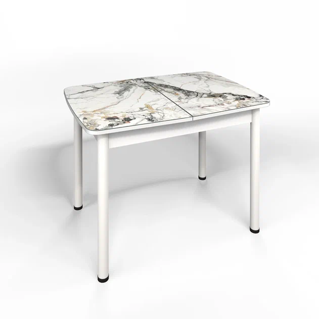 Раздвижной стол «Флорида См-6» Белый корп. Ножки серебро.кругл