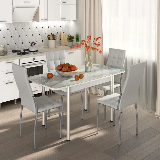 Раздвижной стол «Флорида См-7» Белый корп. Ножки серебро.кругл