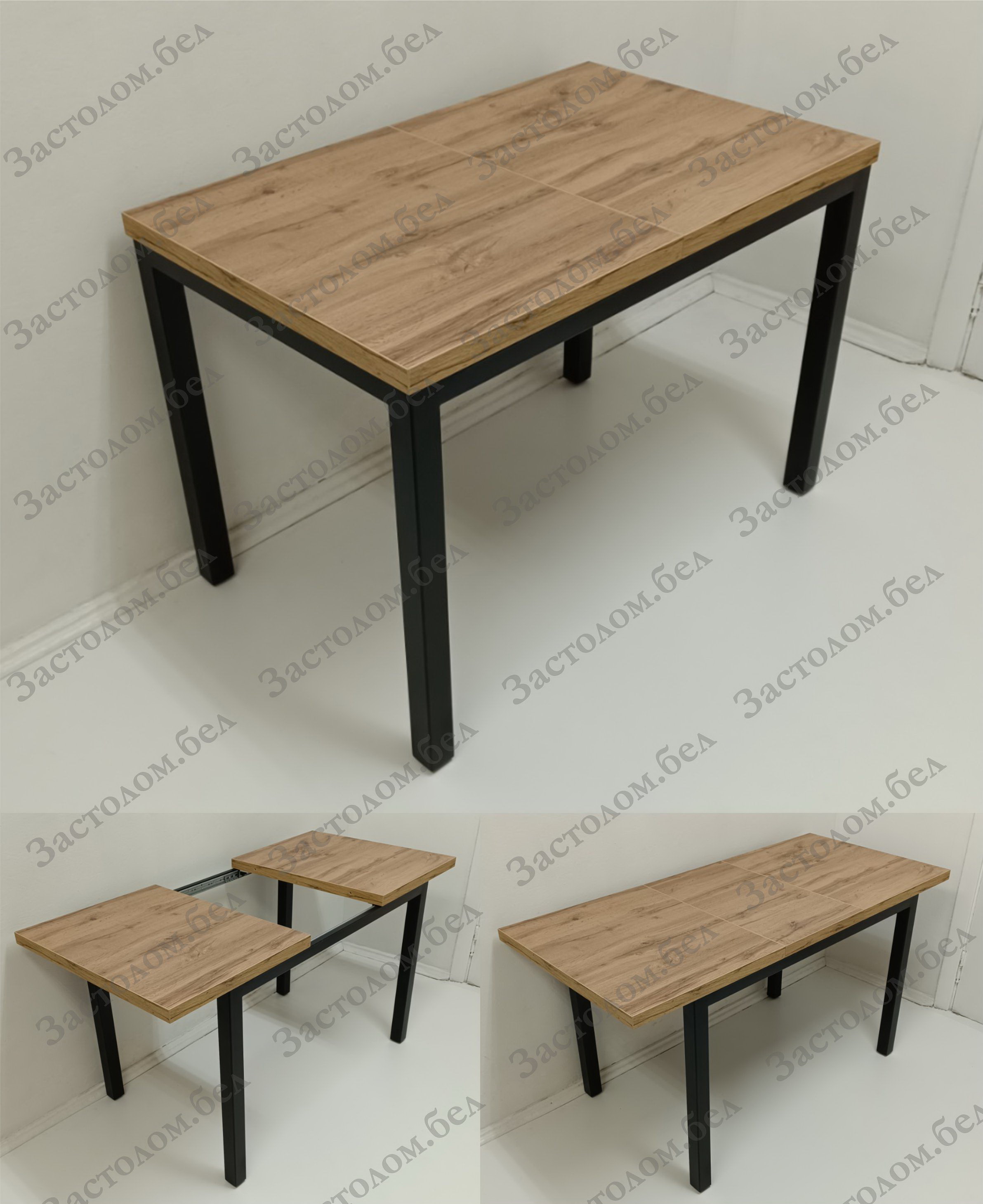 Раздвижной стол из МАССИВА дуба с ЕВРОЗАПИЛОМ на цельносварном подстолье серии Т
