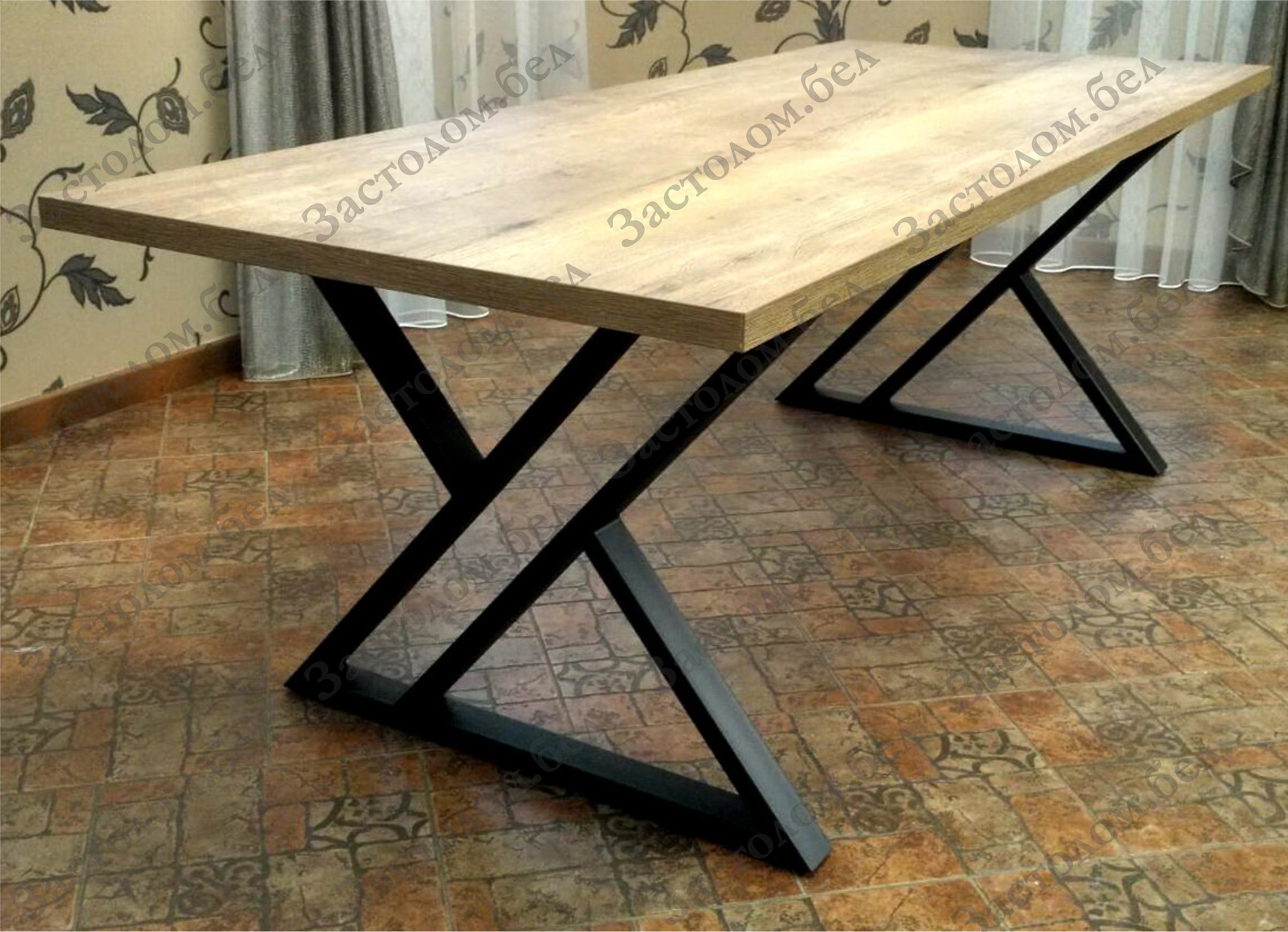 Нераздвижной стол из металла и ЛДСП. Подойдет в интерьер в стиле лофт