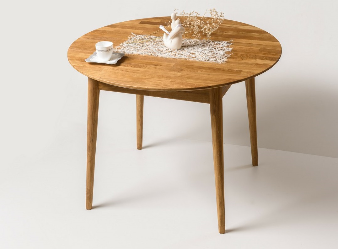 Габариты: 800х800х750 мм. Материал: массив ольхи, МДФ облицованная натуральным шпоном дуба.