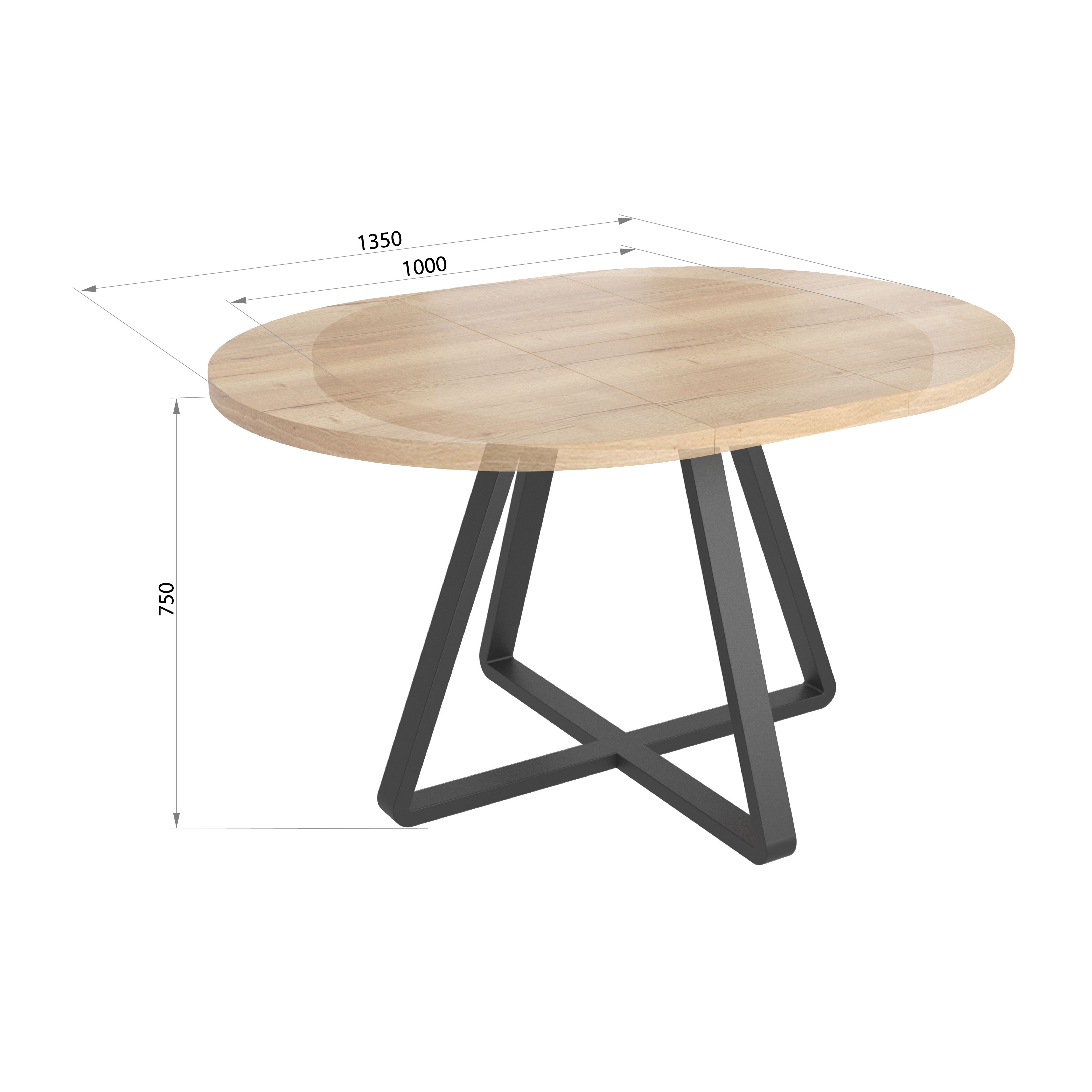 Стол «RONDO М-100» круглый раздвижной 100(135), ДУБ ВЕЛЛИНГТОН/Черный