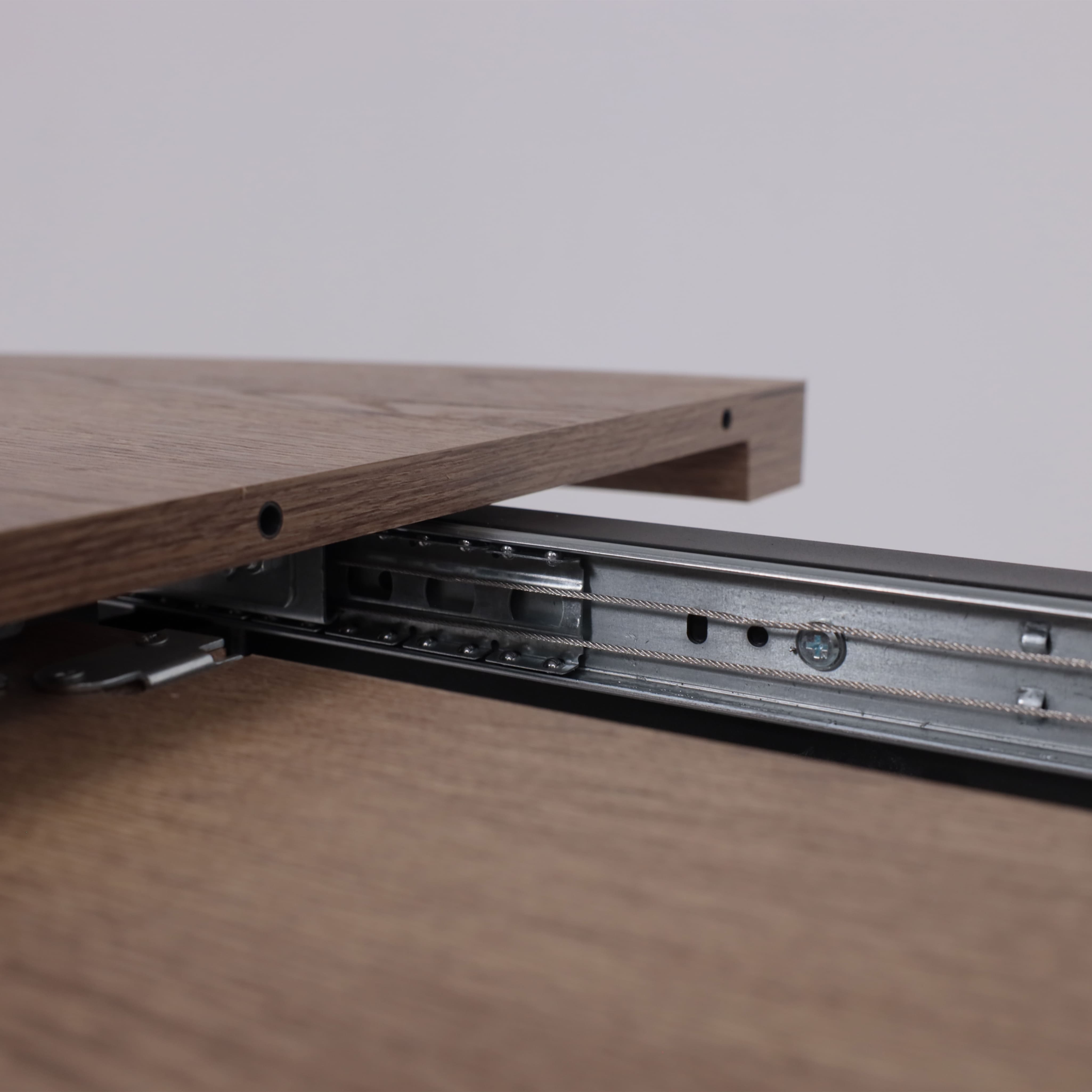 Столешница: МДФ+шпон дуба. Подстолье: массив дуба. Механизм разложения для безцарговых столов.