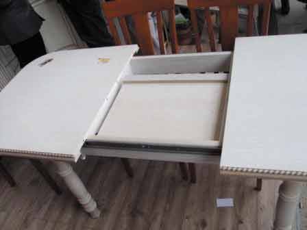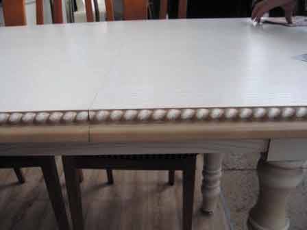 Белая столешница из МДФ, ноги - окрашенный массив дуба.