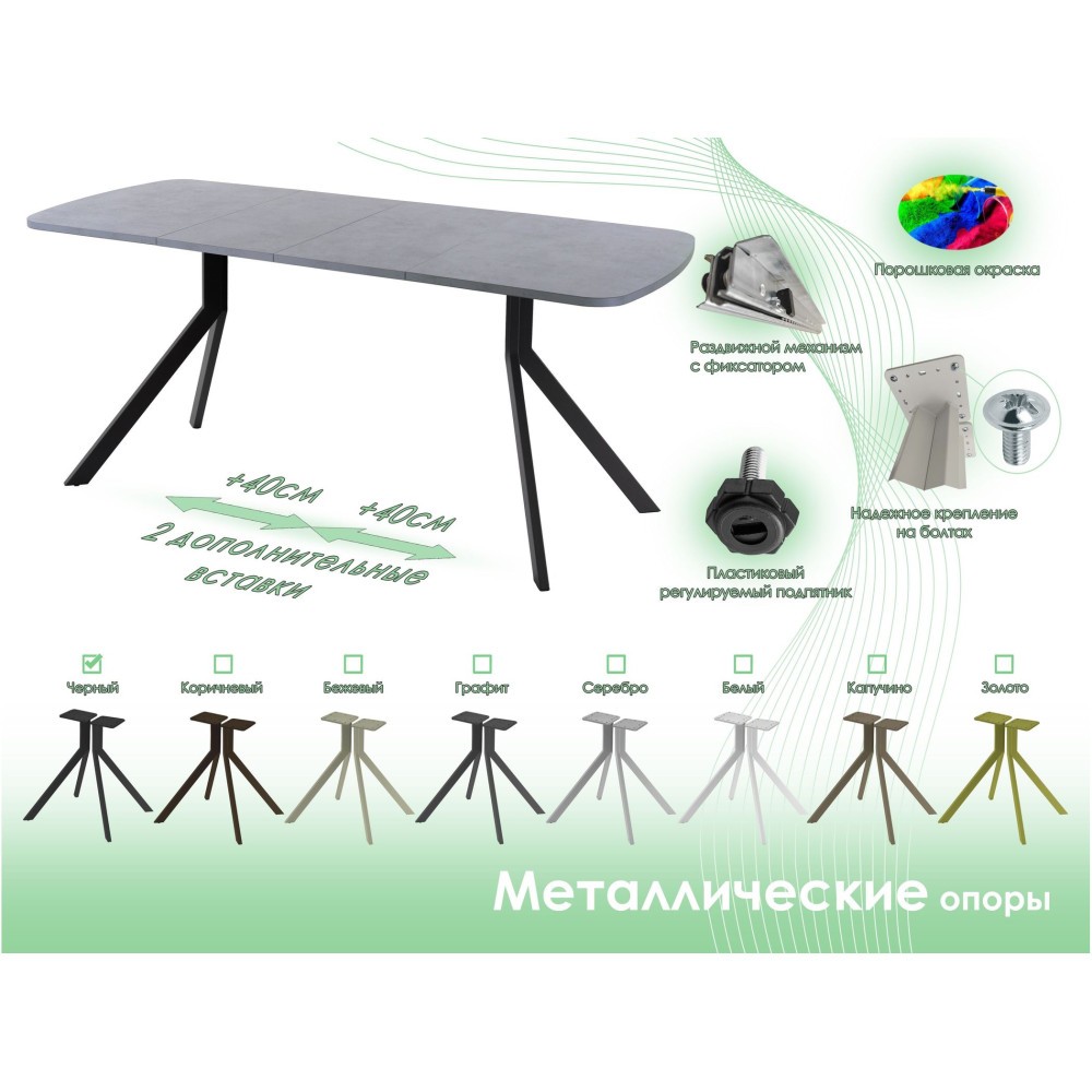 Размер (ДxШxВ): 120(160)x80x76 см. Материал: металл, ЛДСП/пластик.