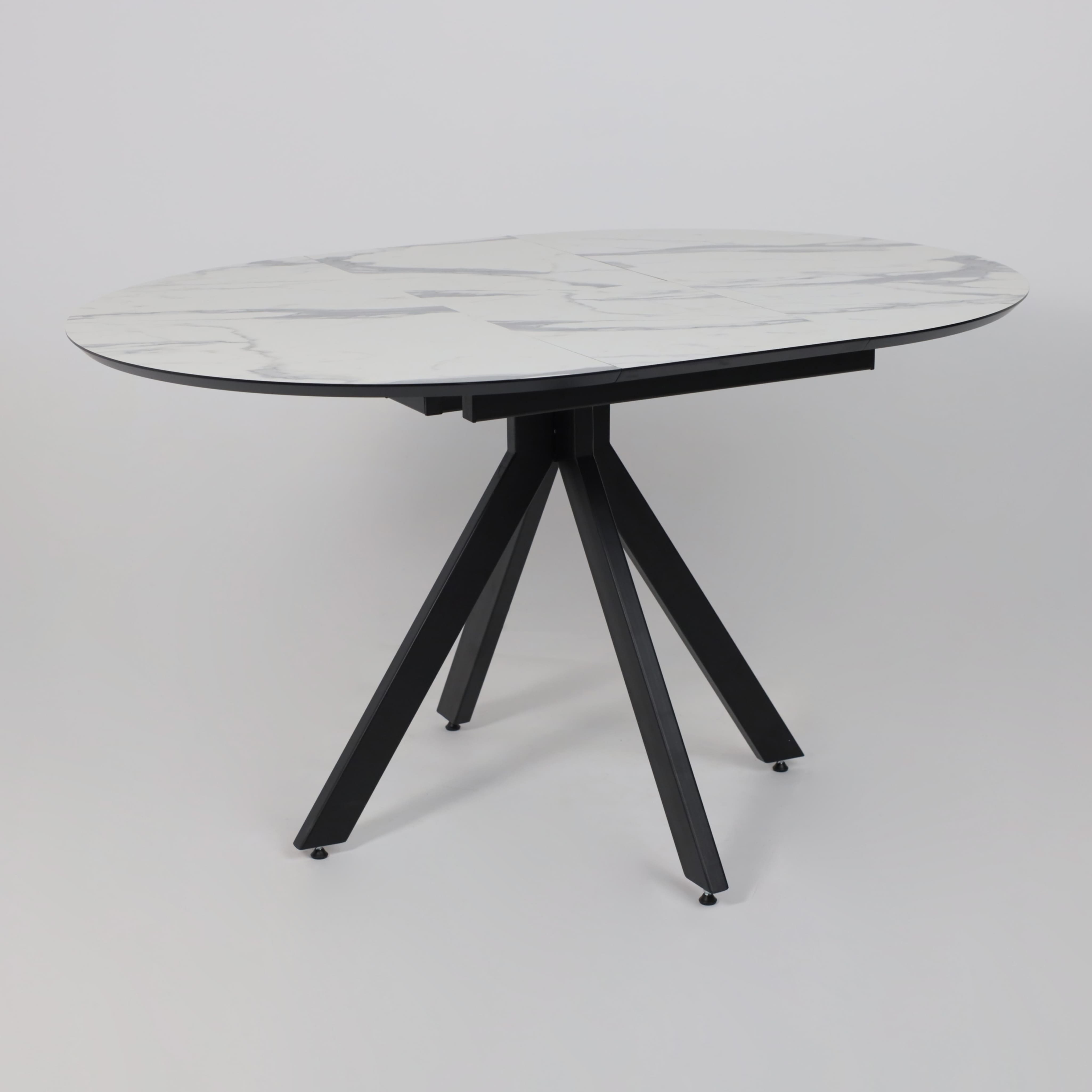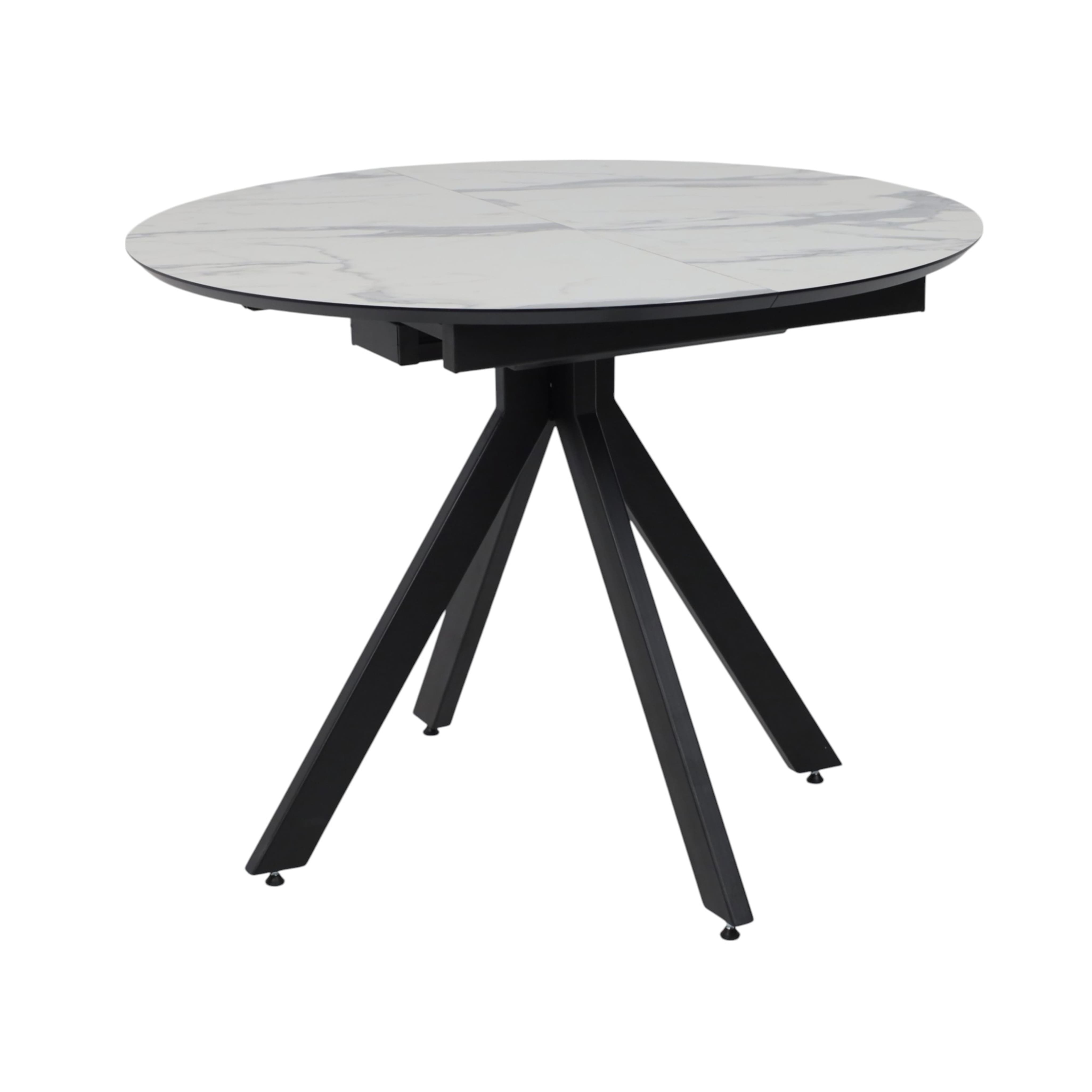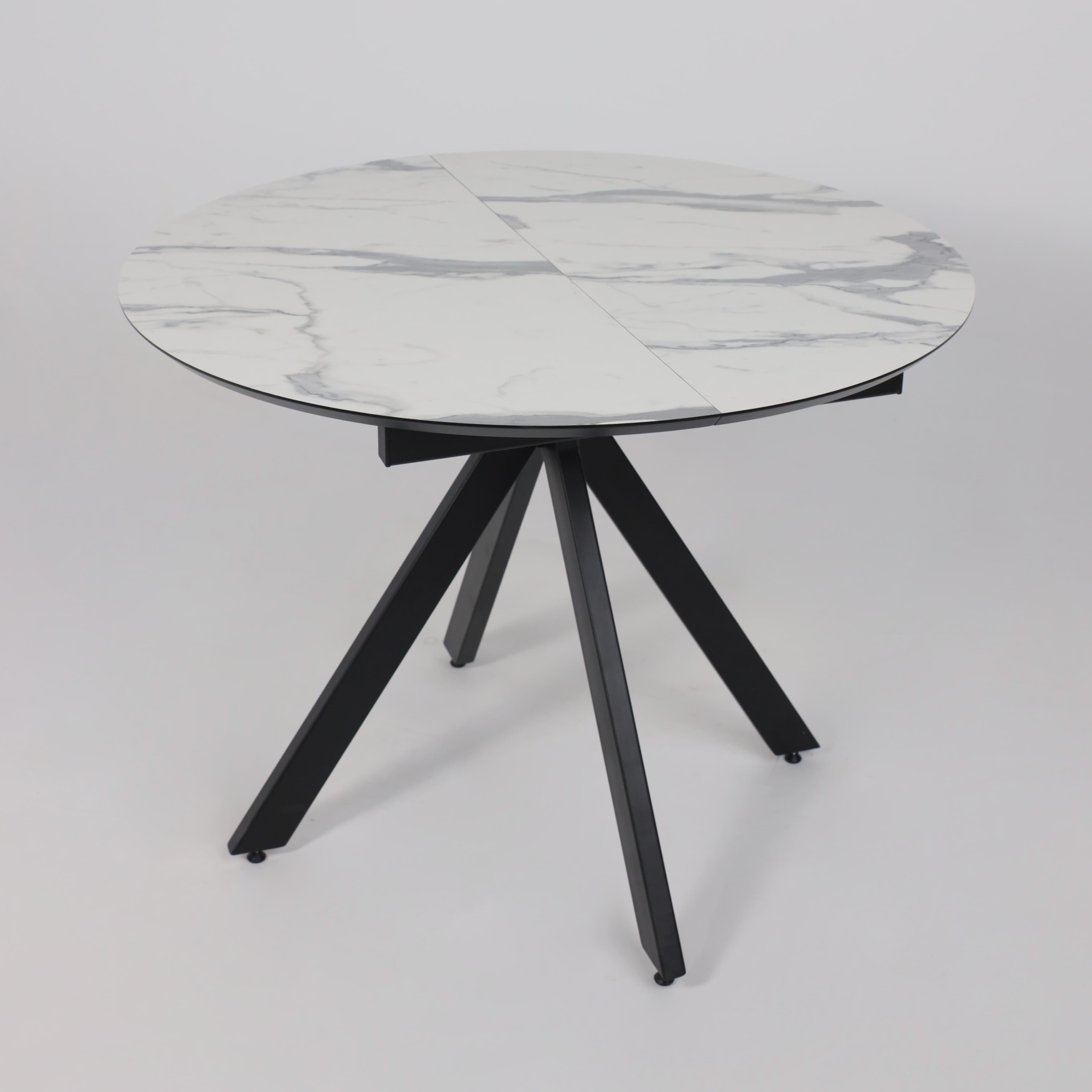 Стол «AV 1107» HPL+МДФ, раздвижной D1000(1350)*750 Белый мрамор/черный