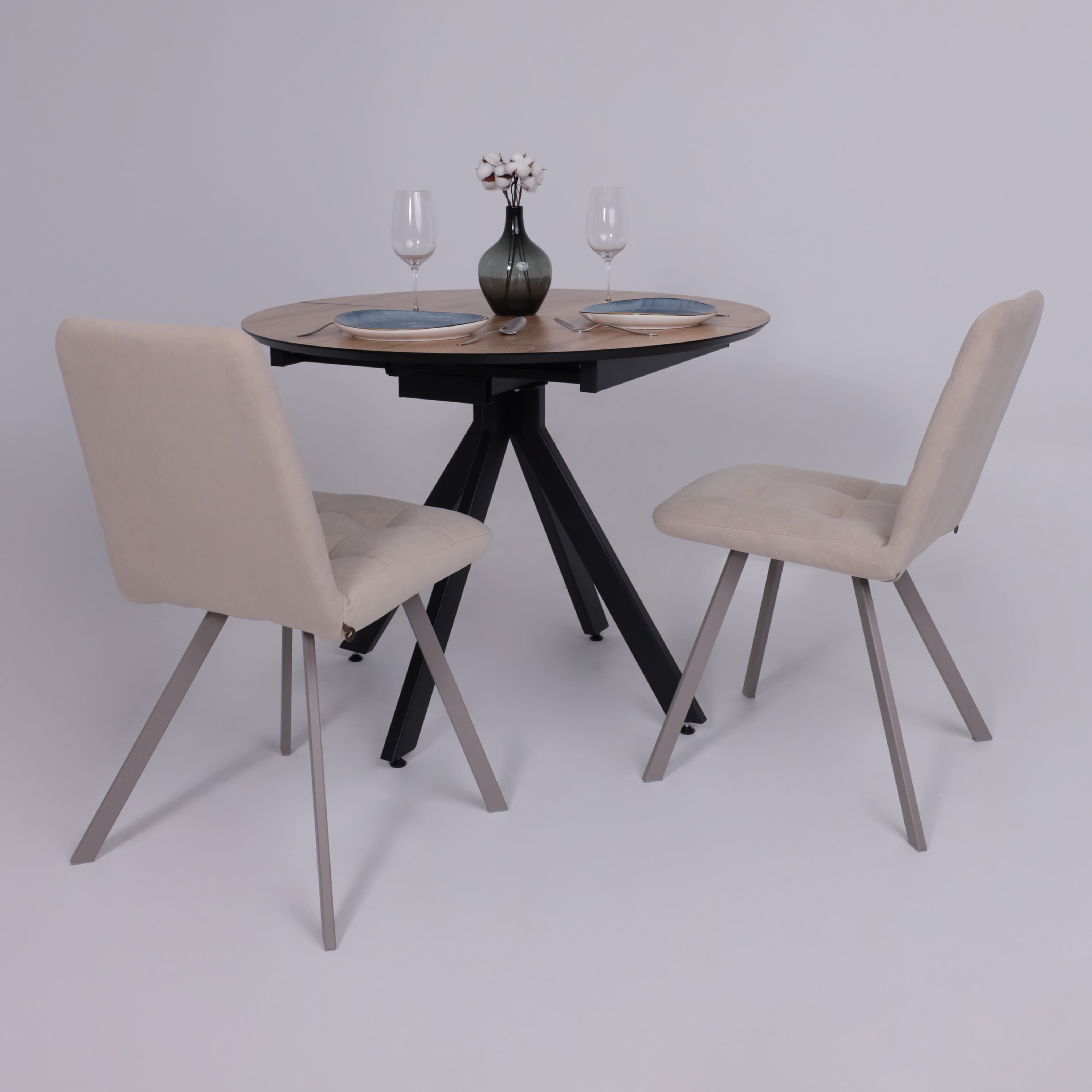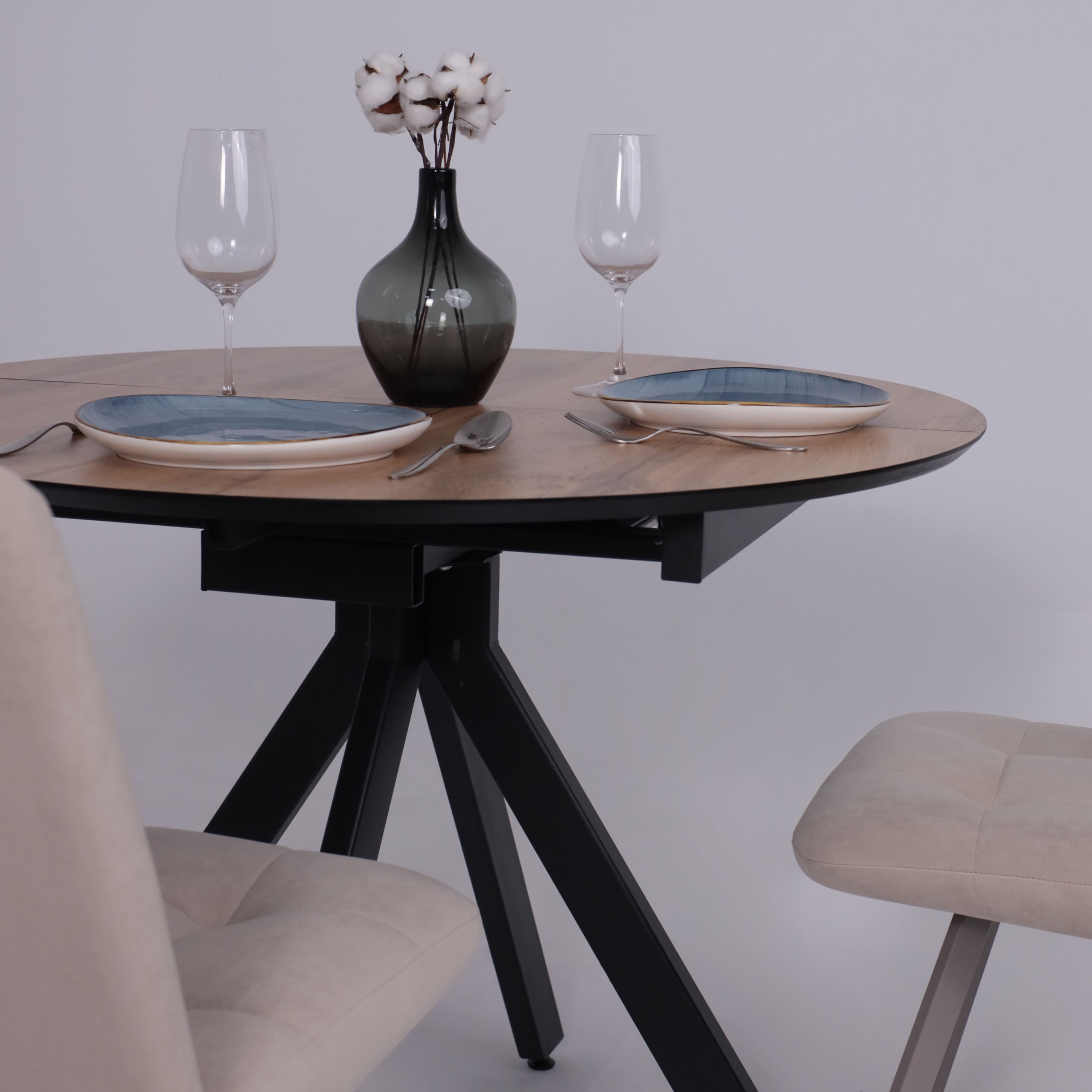 Стол «AV 1107» HPL+МДФ, раздвижной D1000(1350)*750 Дуб Вотан/черный
