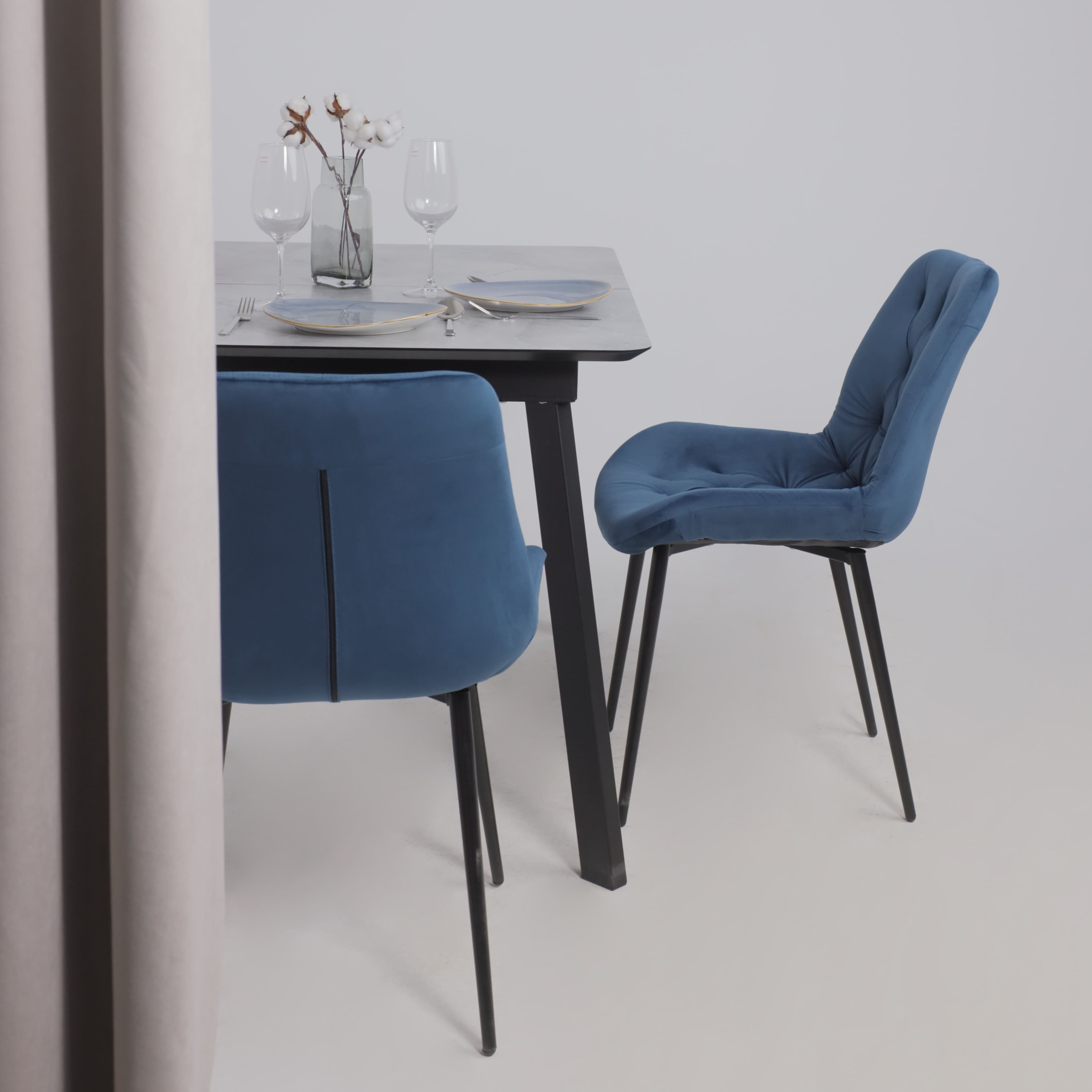 Стол «AV 1209» HPL+МДФ, раздвижной 1200 (1600)*800 Мрамор Марквина синий/черный