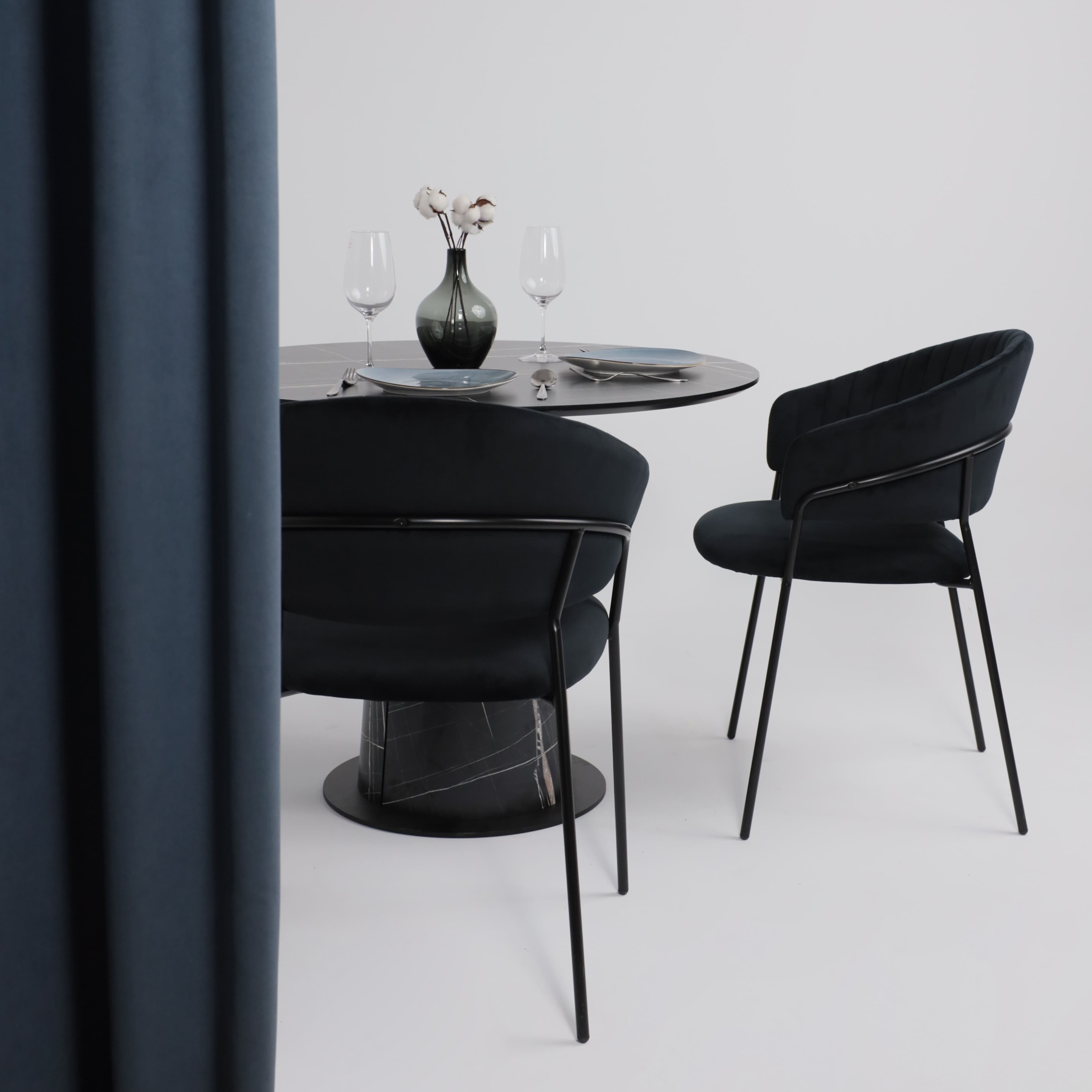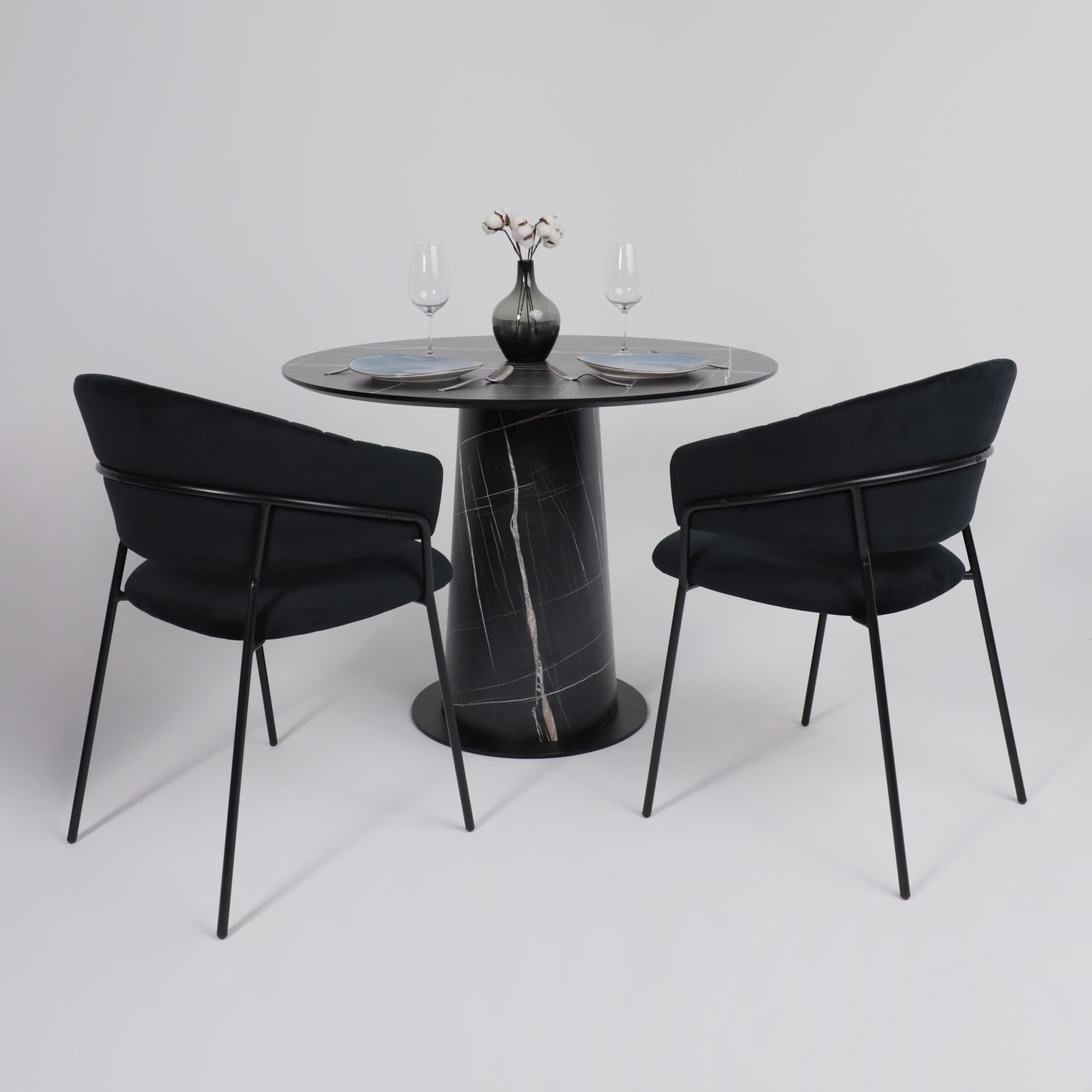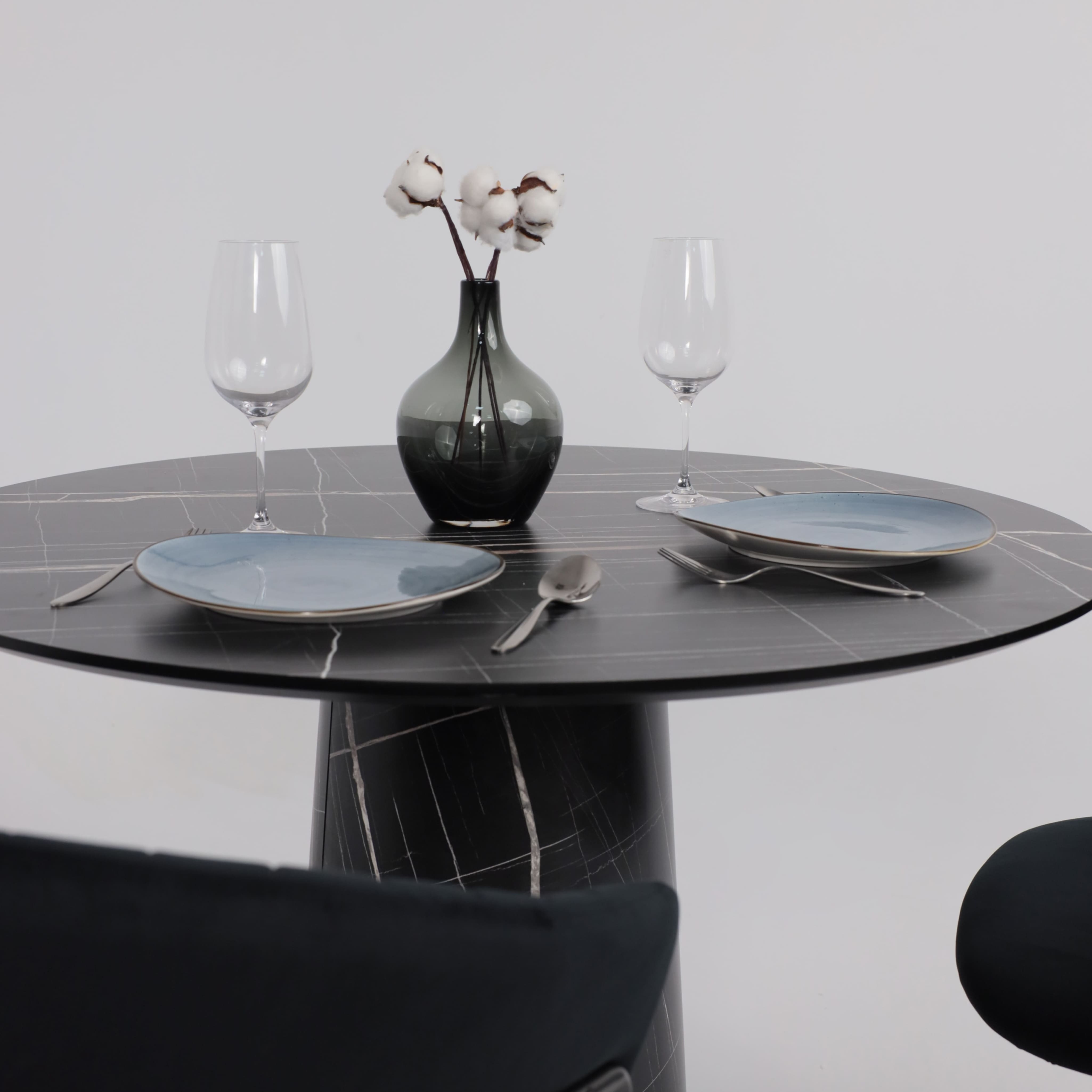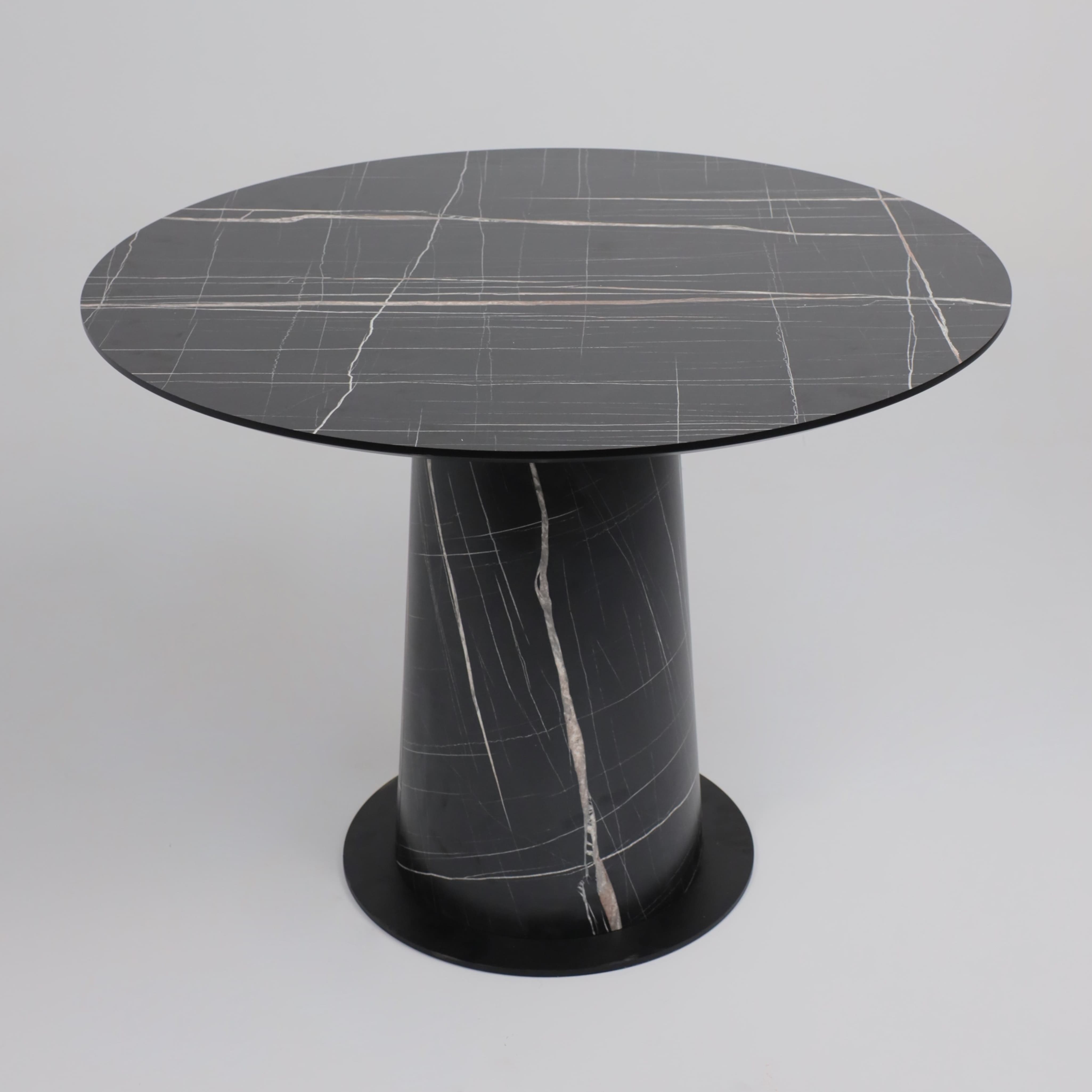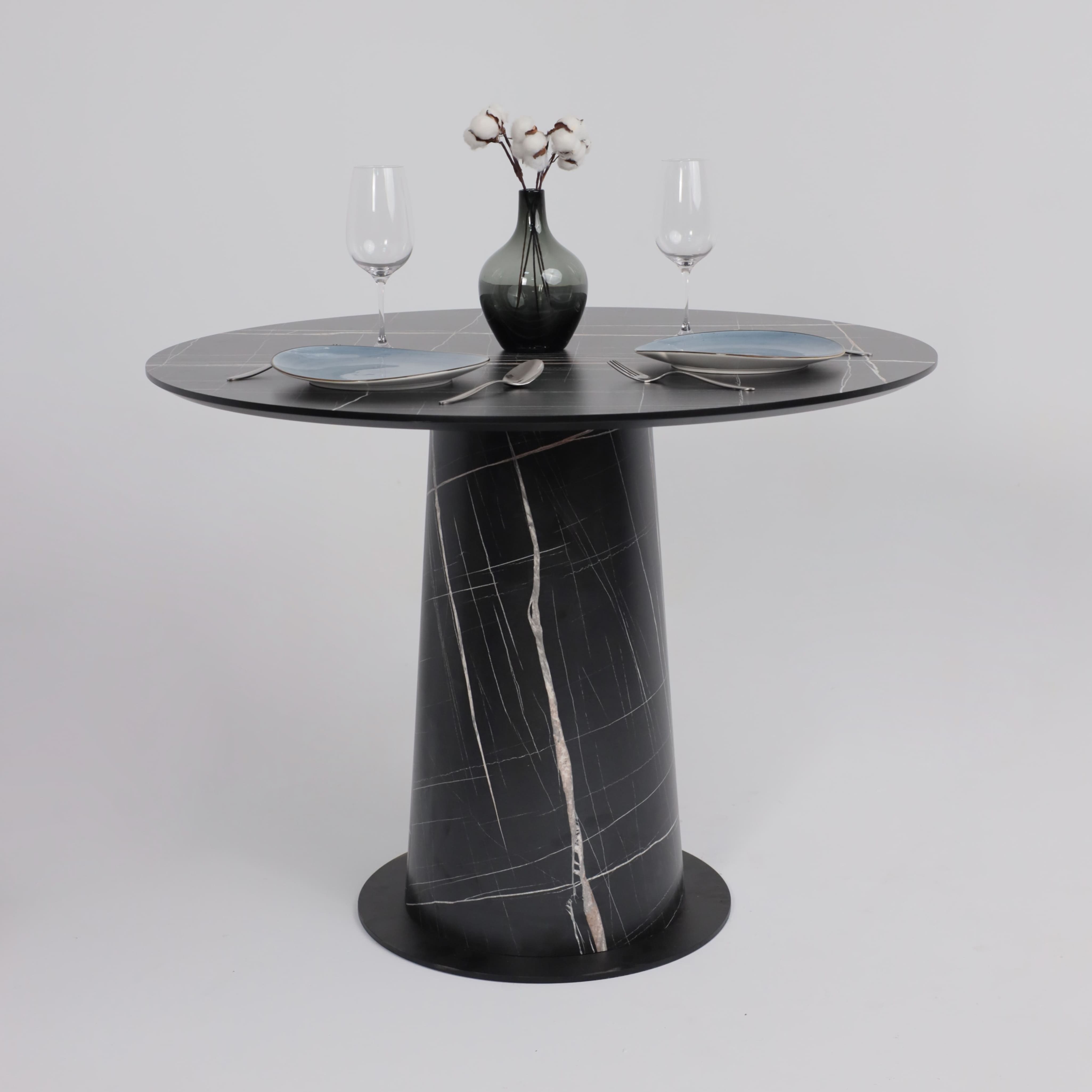 Стол «РАУНД» керамика 2 кат. Д 1100, Камень белый Elyt pulido/ Черный матовый