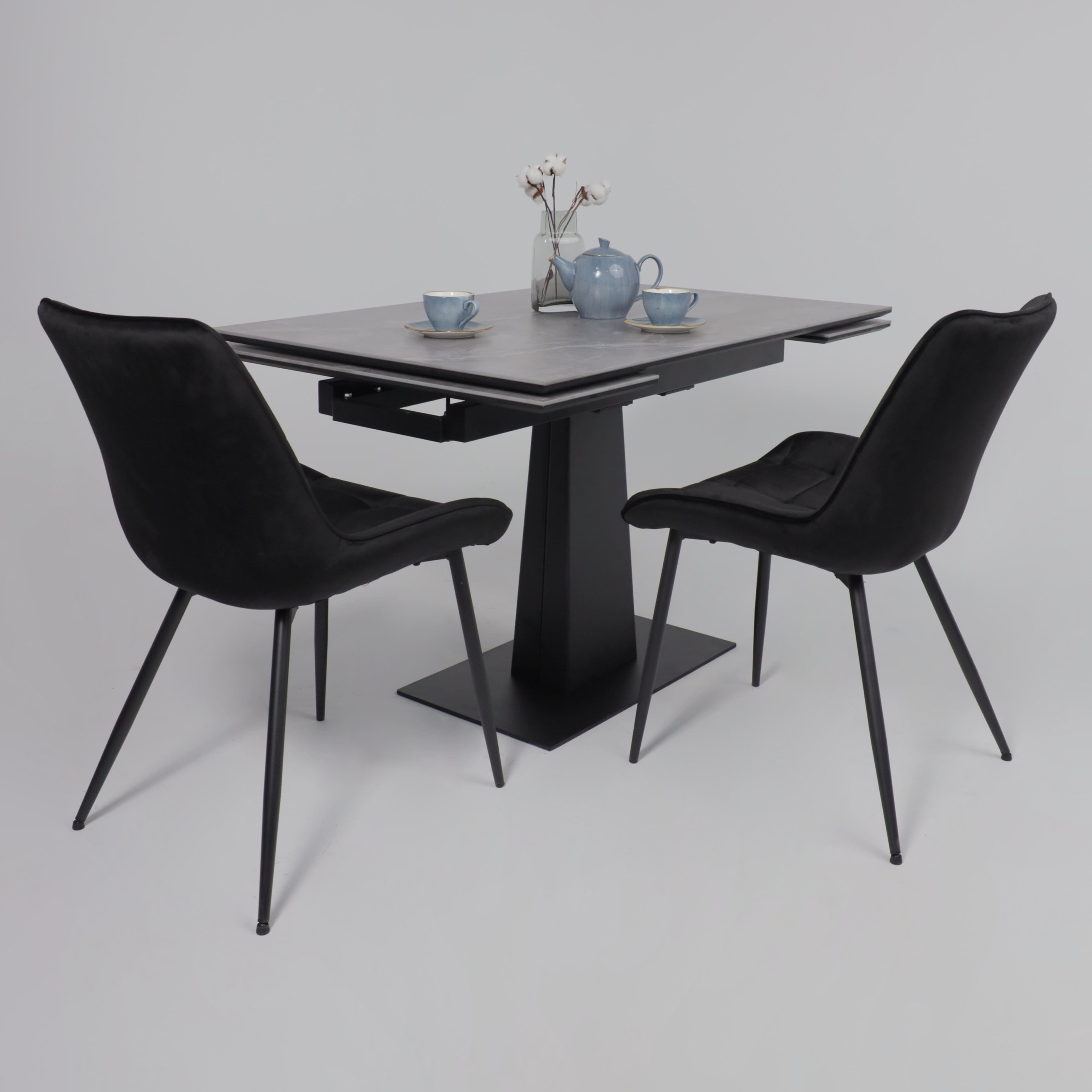 Стол «AV 2119» МДФ+керамика, раздвижной 1200 (1800)*800 серый, матовый LARKA GREY/черный