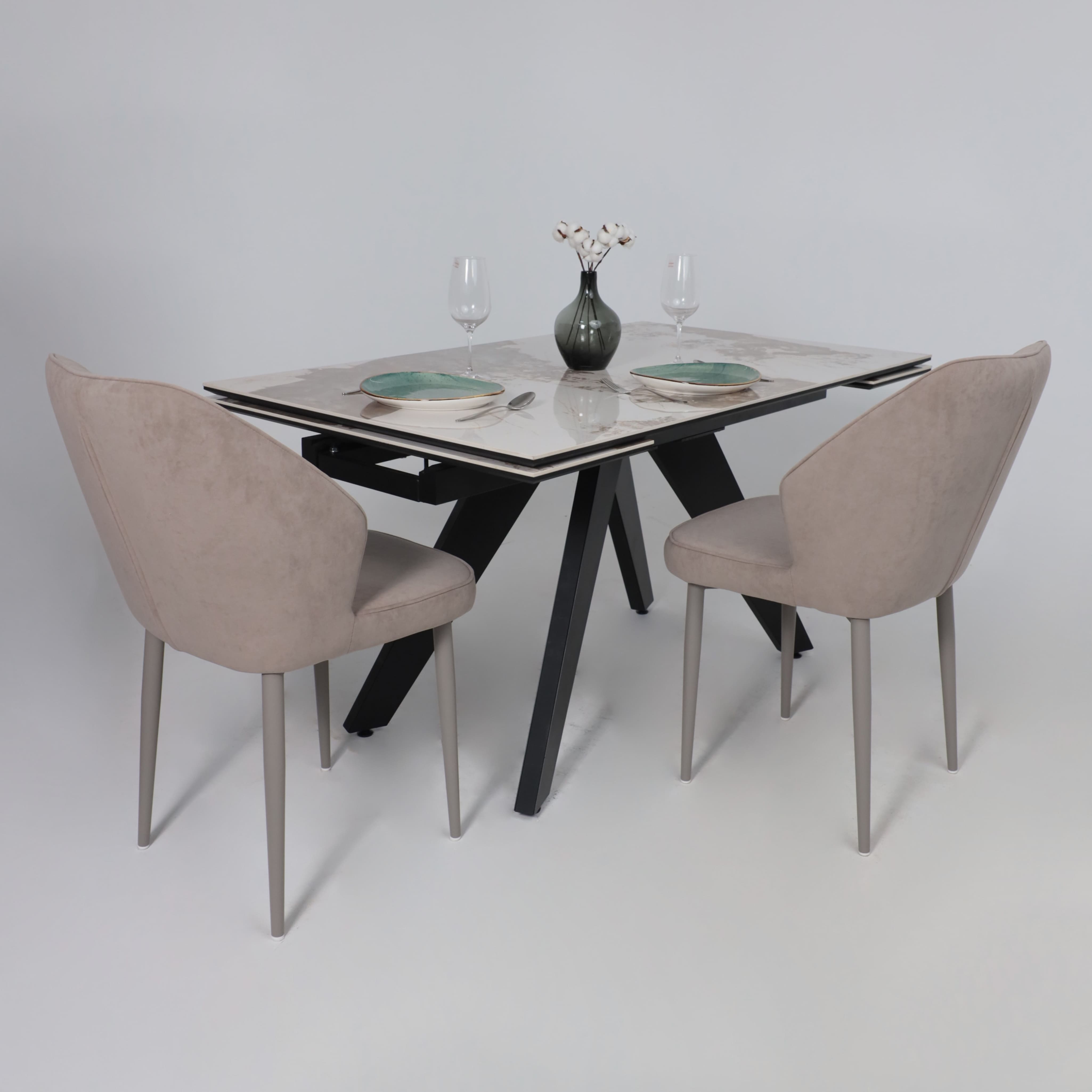 Стол «AV 2122» МДФ+керамика, раздвижной 1400 (2000)*850 белый, глянцевый PANDORA/черный
