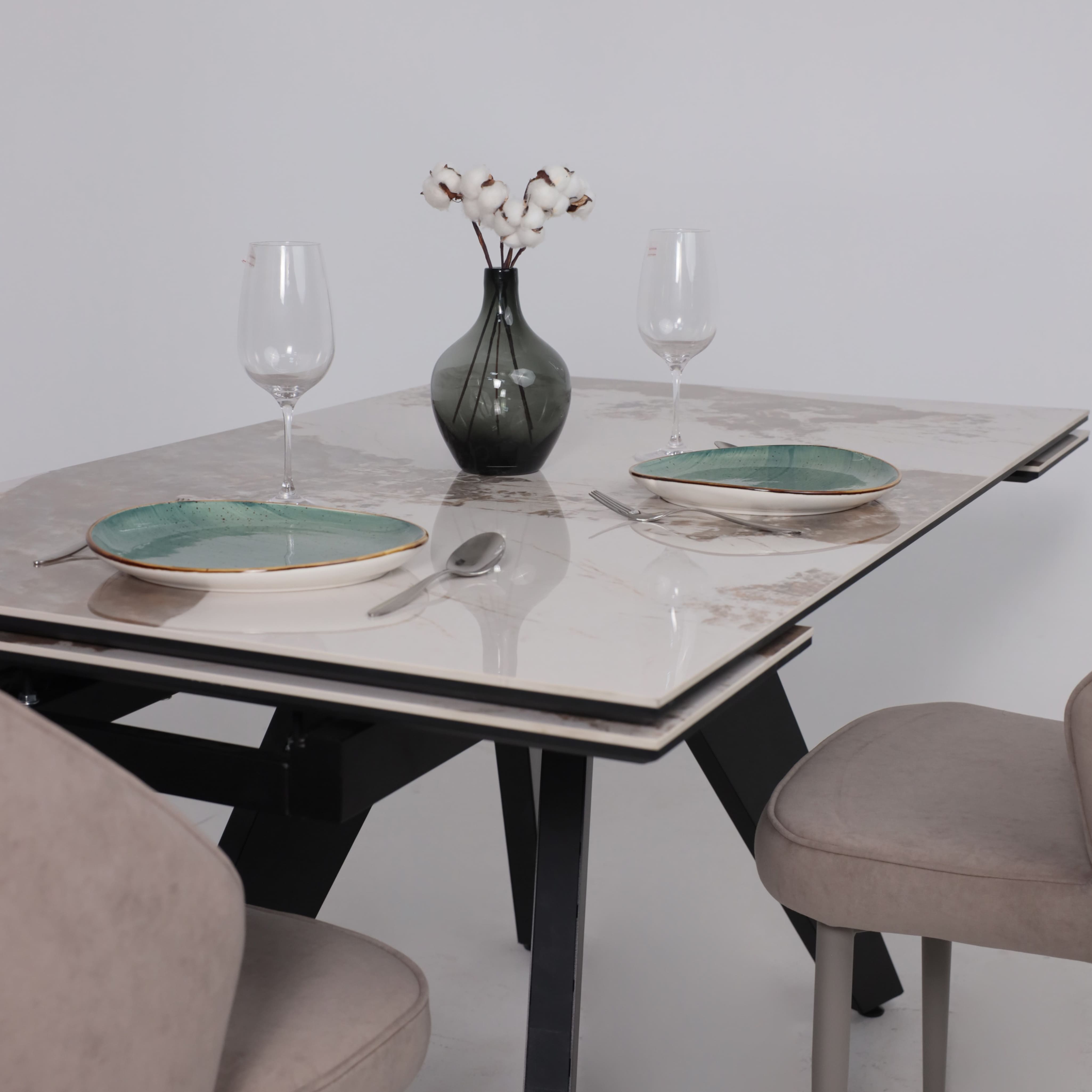 Стол «AV 2122» МДФ+керамика, раздвижной 1400 (2000)*850 натуральный, глянцевый GOLD JADE/черный
