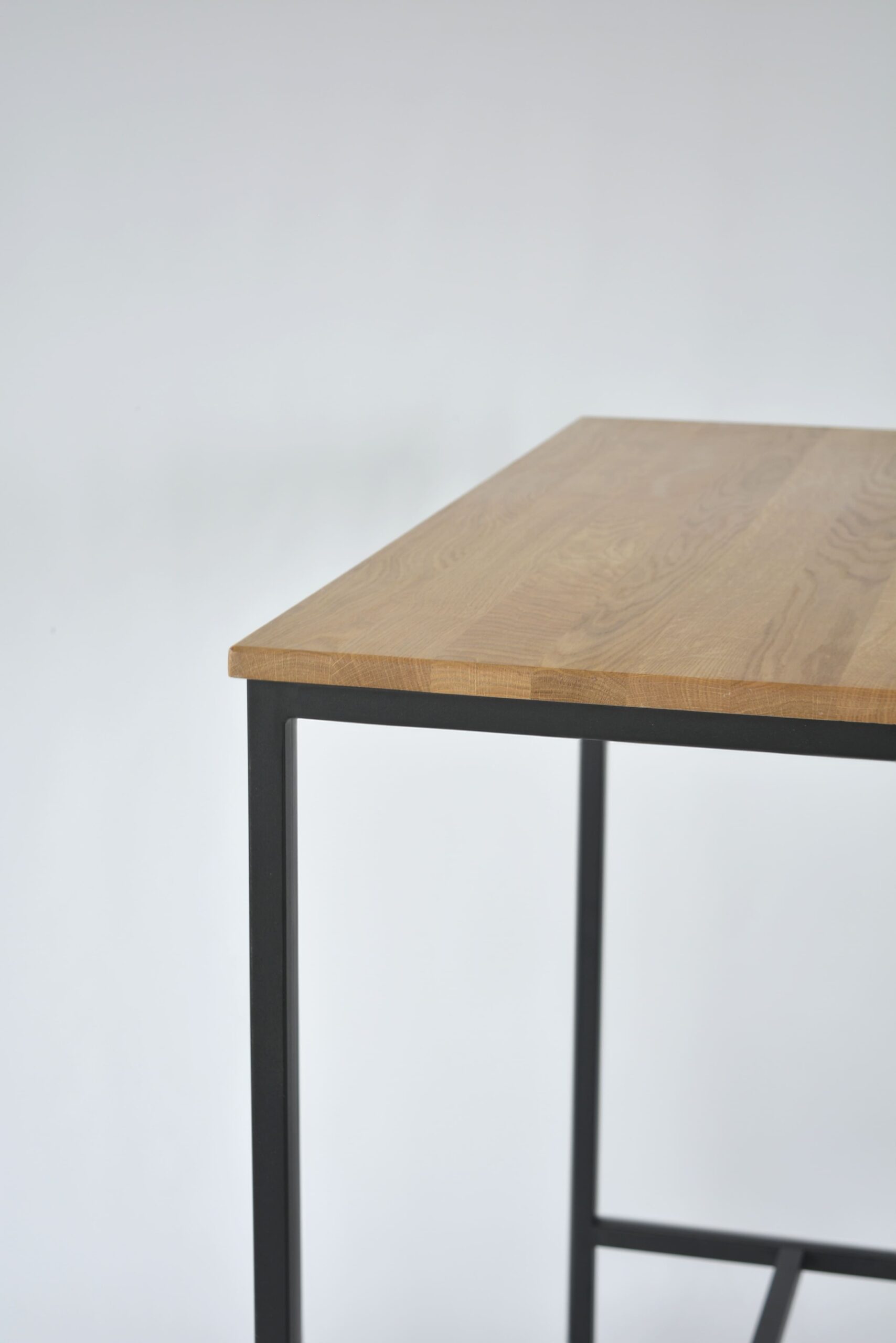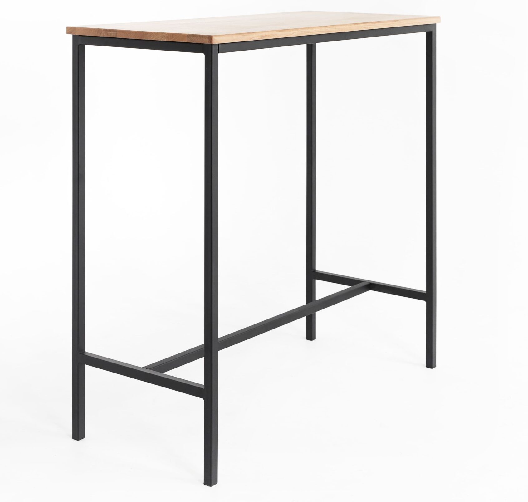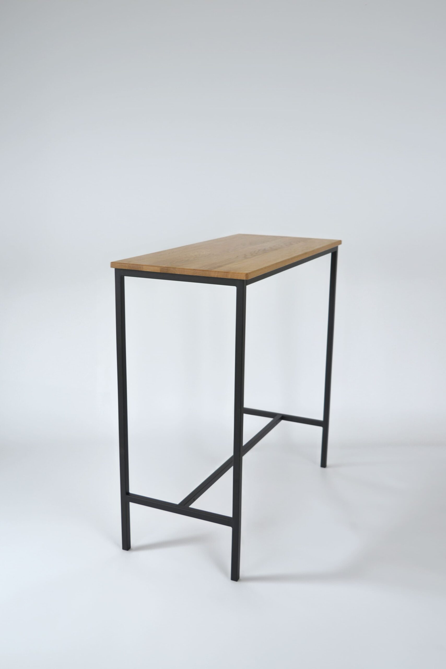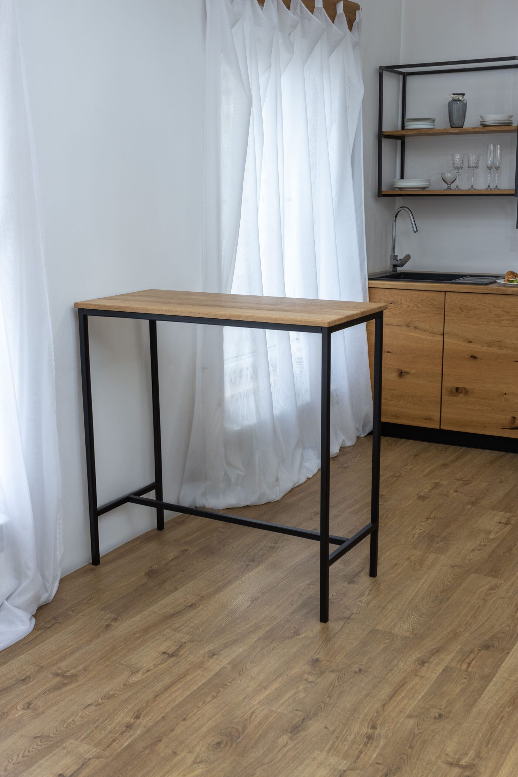Прямоугольный барный стол, консоль. Выполнен из массива дуба и металла.
