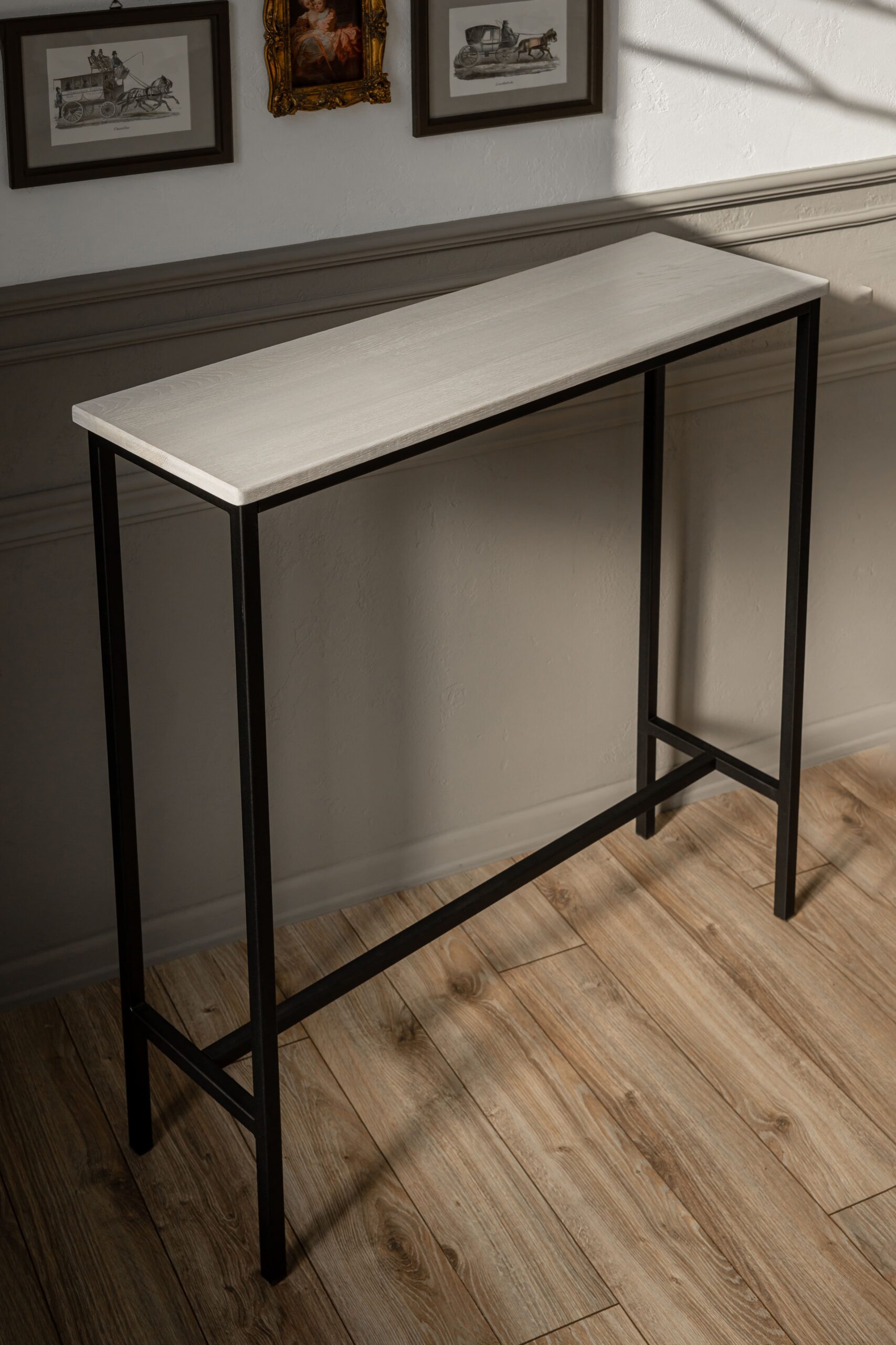 Прямоугольный барный стол, консоль. Выполнен из массива дуба и металла.