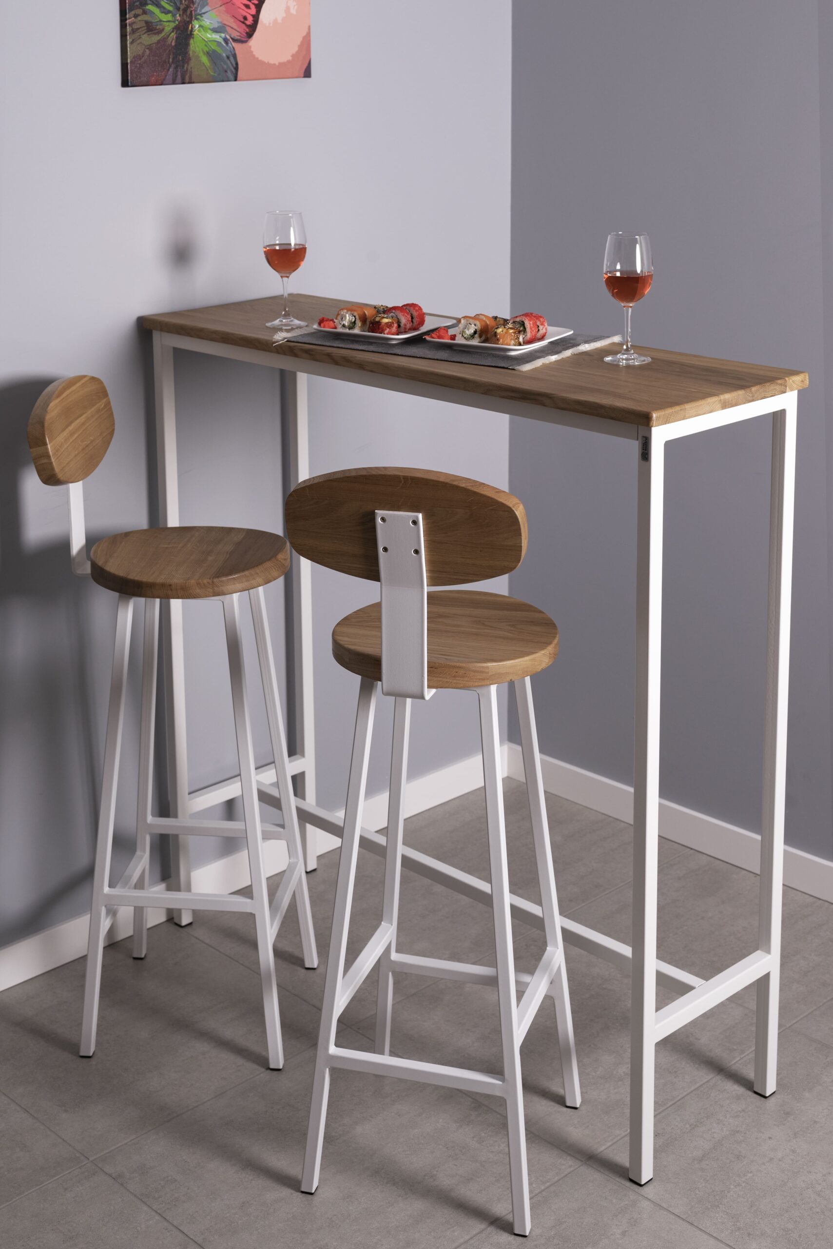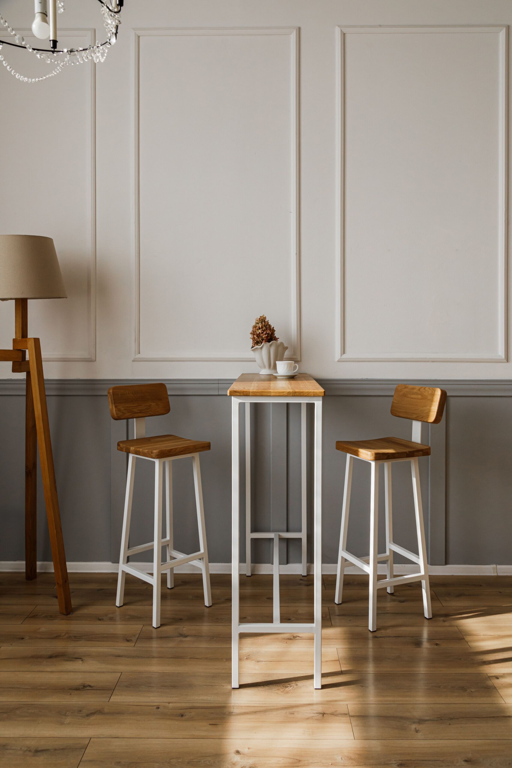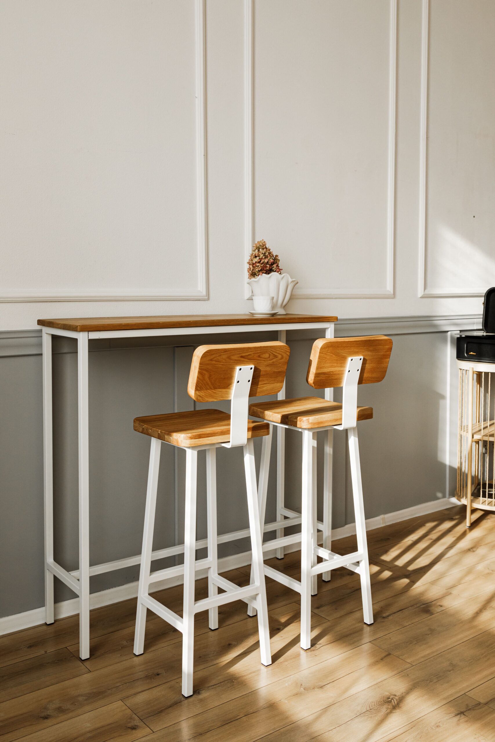 Барный стол отлично вписывается в такие стили как лофт, модерн, современный и скандинавский, подчёркивая индивидуальность и уникальность декора. Наш стол универсален и может использоваться как в домашних условиях на кухне, балконе, в гостиной, коридоре, лоджии, так и в общественных местах, таких как бар, кафе, ресторан, клуб и офис. Столешница из натурального массива дуба – покорит Вас текстурой, запахом дерева и эстетикой.