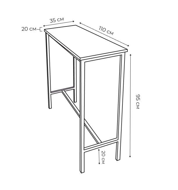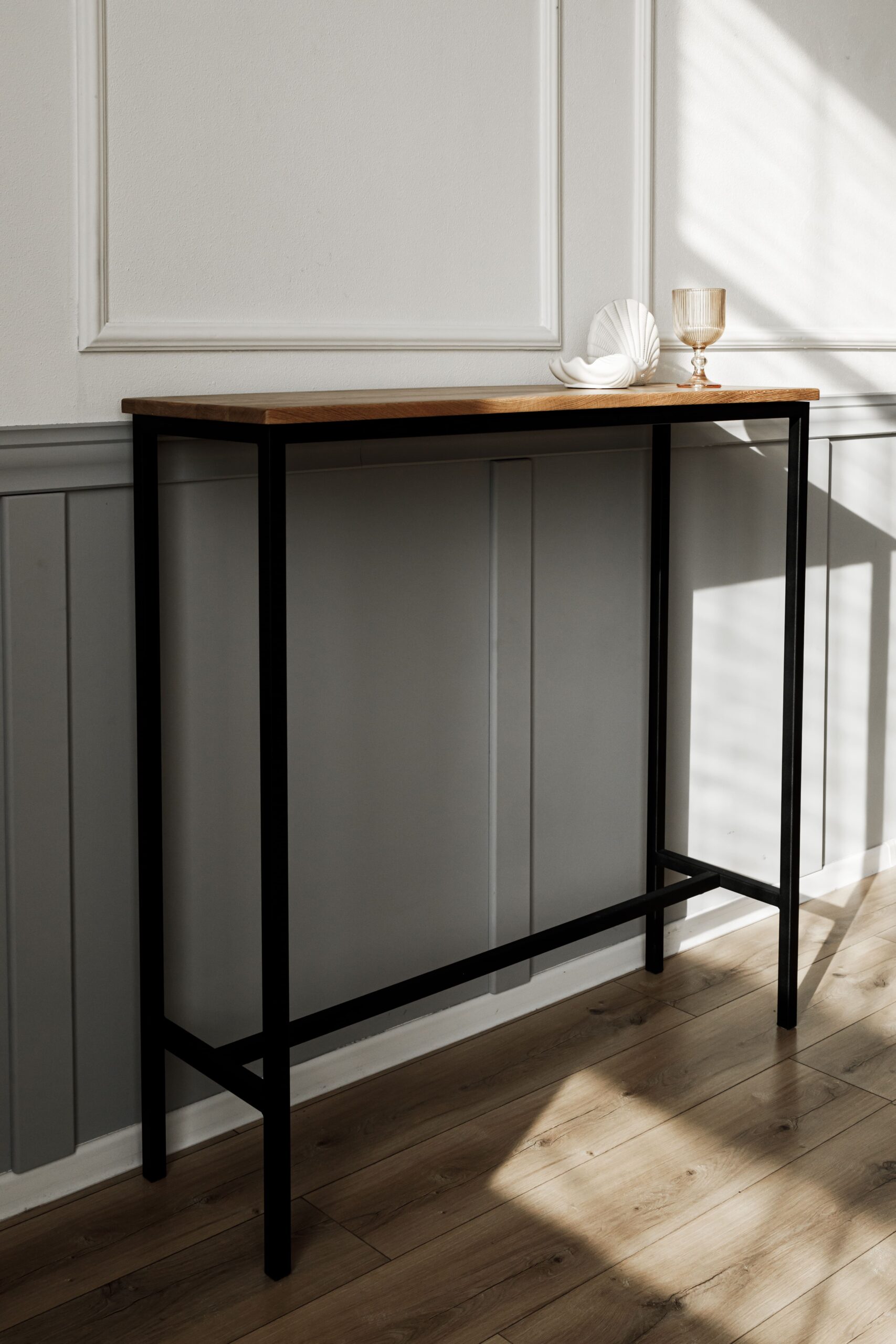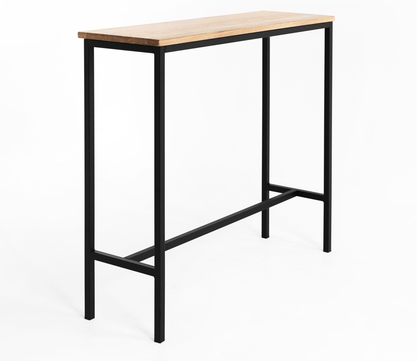 Прямоугольный барный стол, консоль. Выполнен из массива дуба и металла.