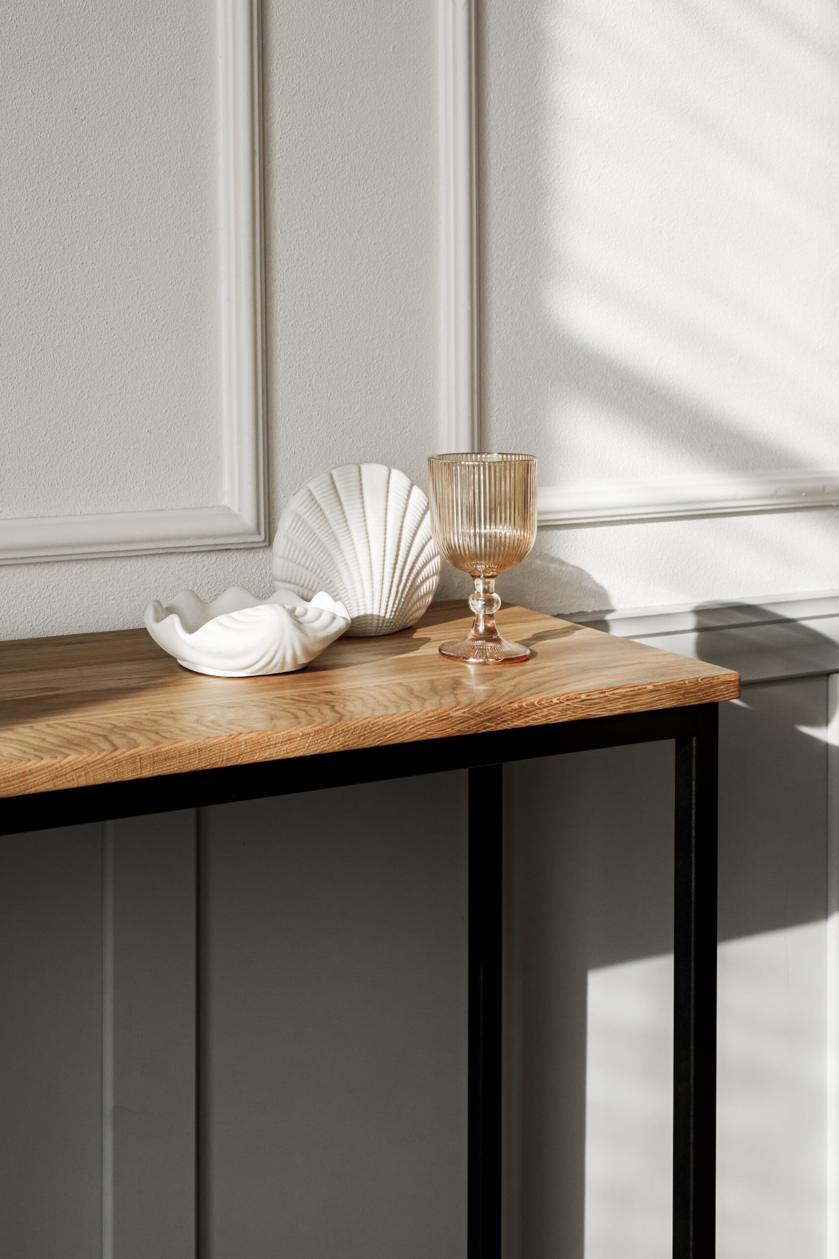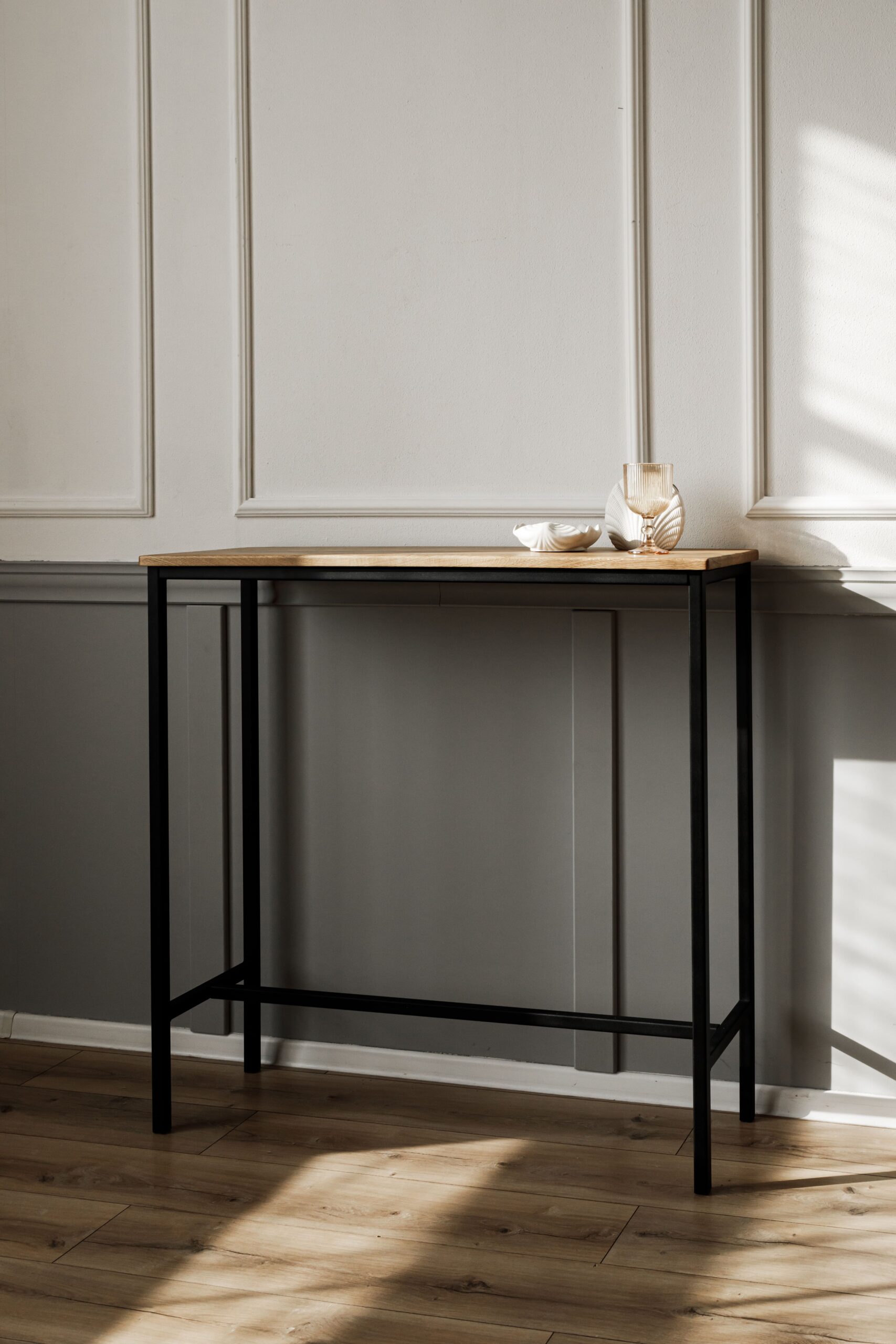 Прямоугольный барный стол, консоль. Материал: цельноламельный массив дуба, металл.