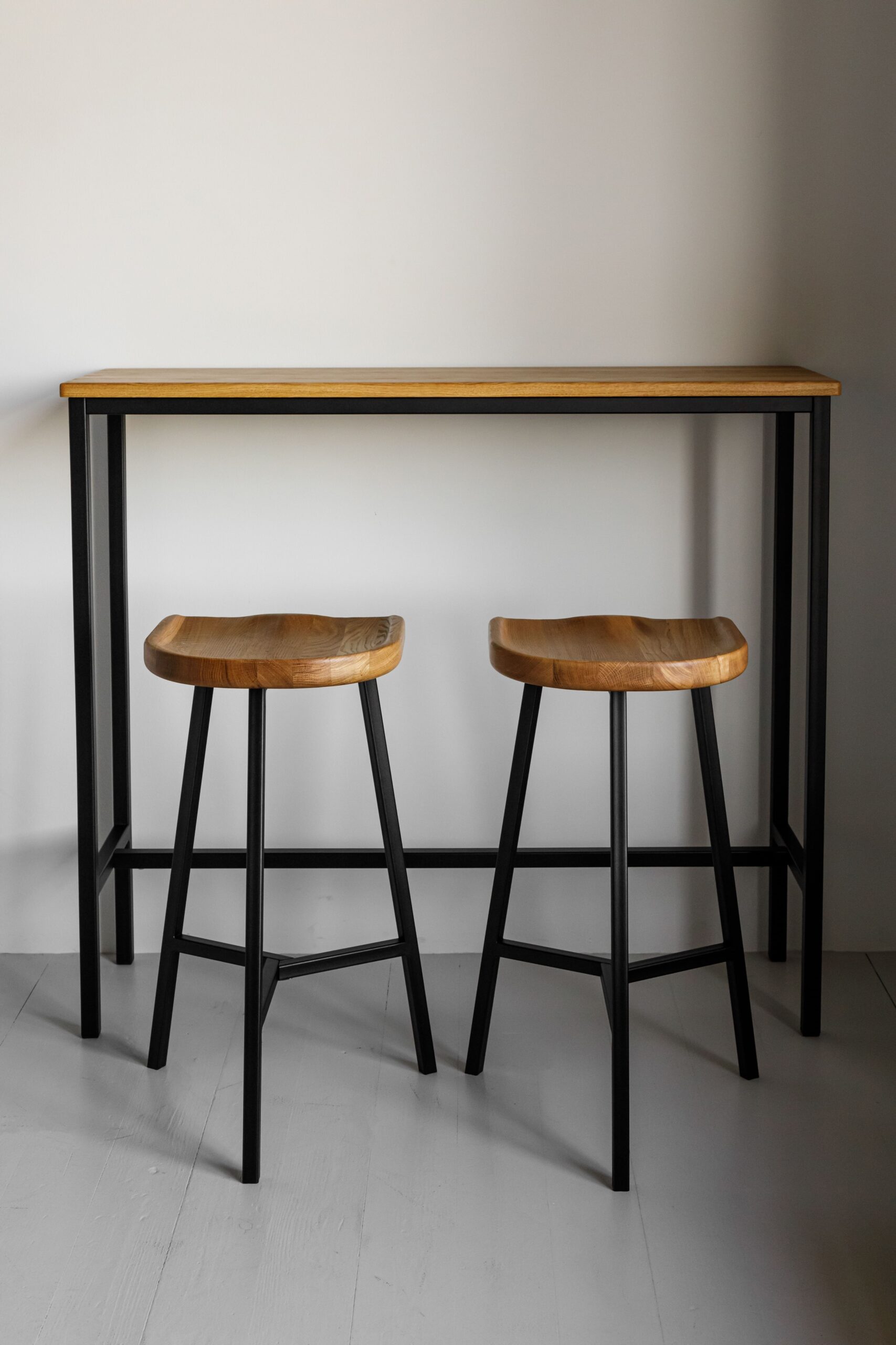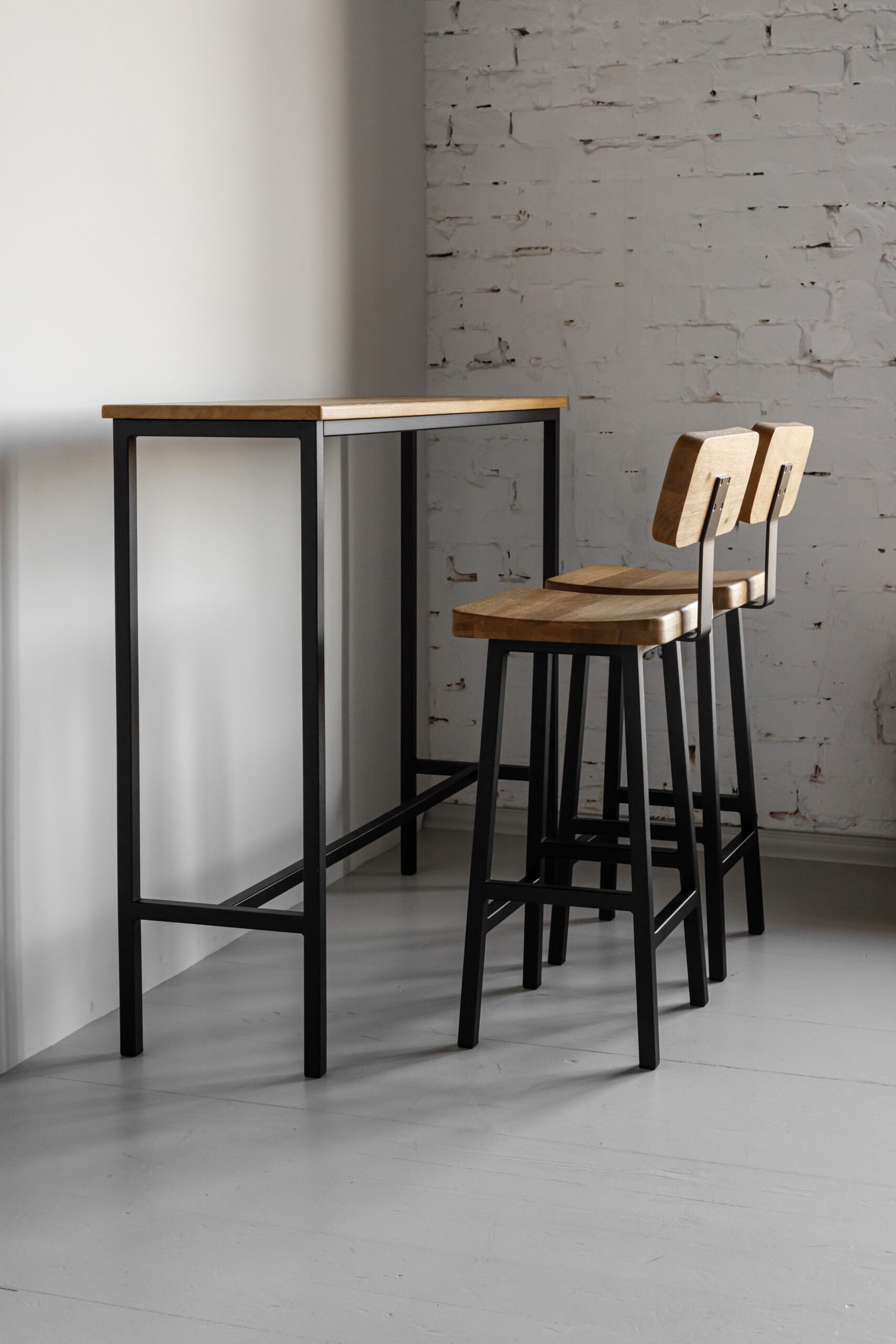 Барный стол отлично вписывается в такие стили как лофт, модерн, современный и скандинавский, подчёркивая индивидуальность и уникальность декора. Наш стол универсален и может использоваться как в домашних условиях на кухне, балконе, в гостиной, коридоре, лоджии, так и в общественных местах, таких как бар, кафе, ресторан, клуб и офис. Столешница из натурального массива дуба – покорит Вас текстурой, запахом дерева и эстетикой.