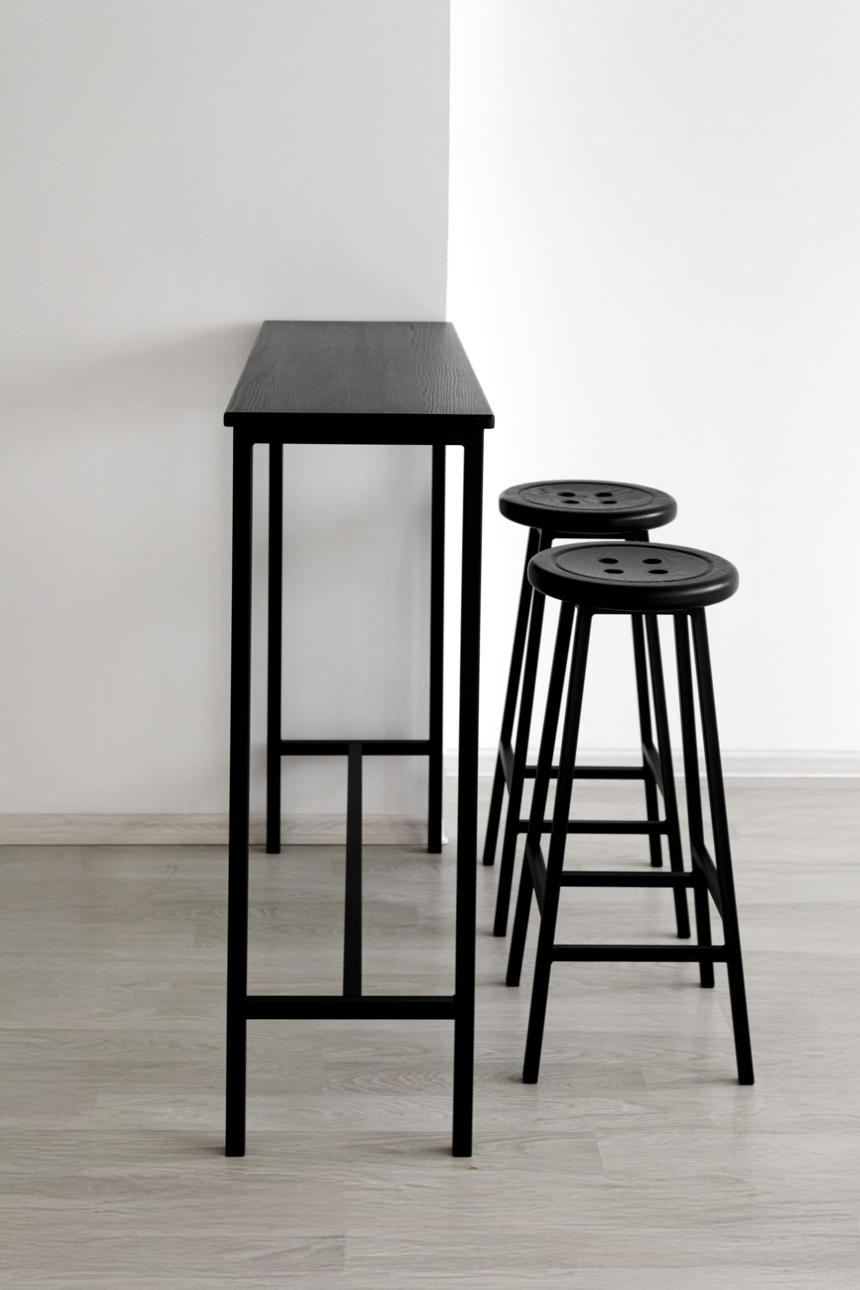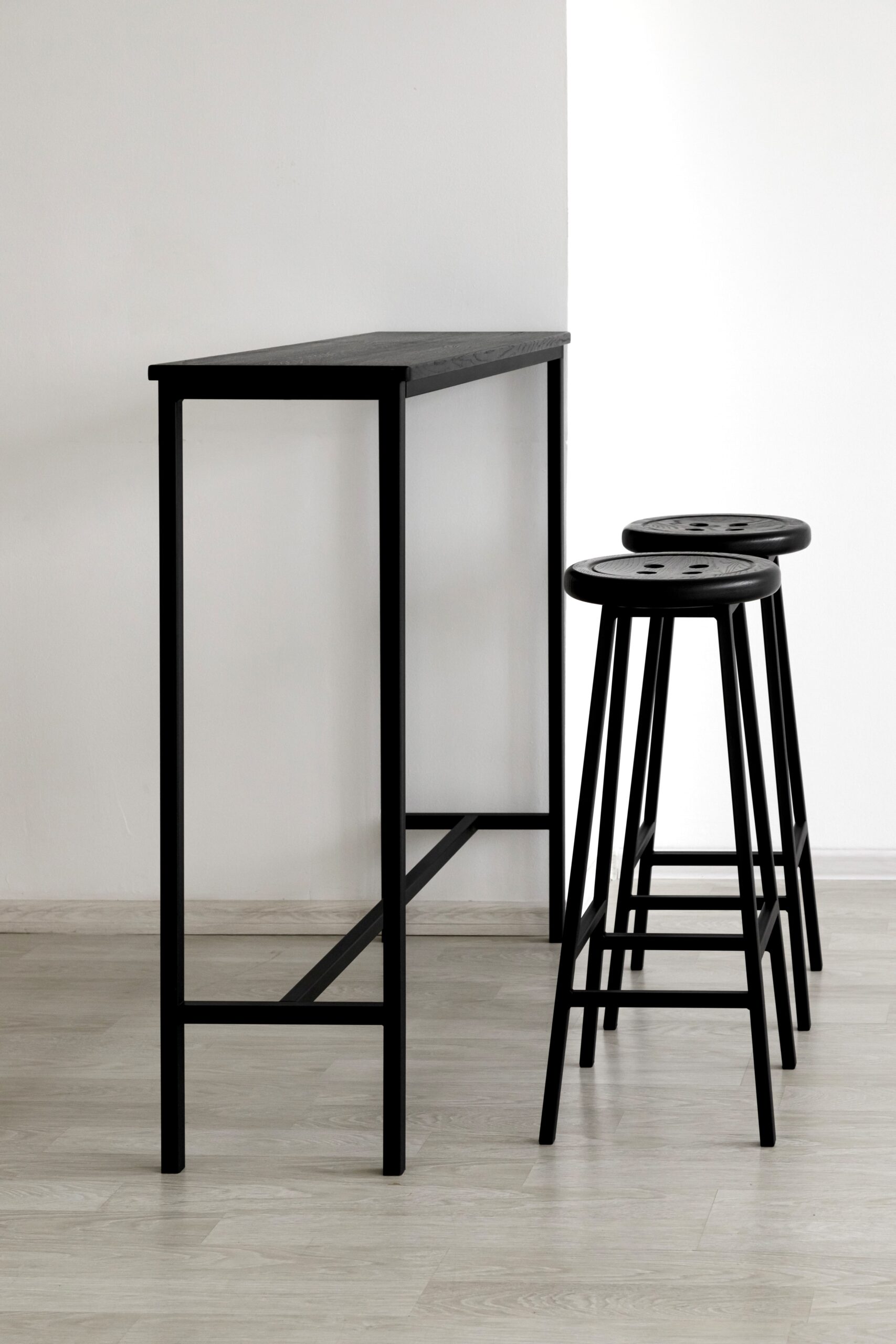 Барный стол отлично вписывается в такие стили как лофт, модерн, современный и скандинавский, подчёркивая индивидуальность и уникальность декора. Наш стол универсален и может использоваться как в домашних условиях на кухне, балконе, в гостиной, коридоре, лоджии, так и в общественных местах, таких как бар, кафе, ресторан, клуб и офис. Столешница из натурального массива дуба – покорит Вас текстурой, запахом дерева и эстетикой.