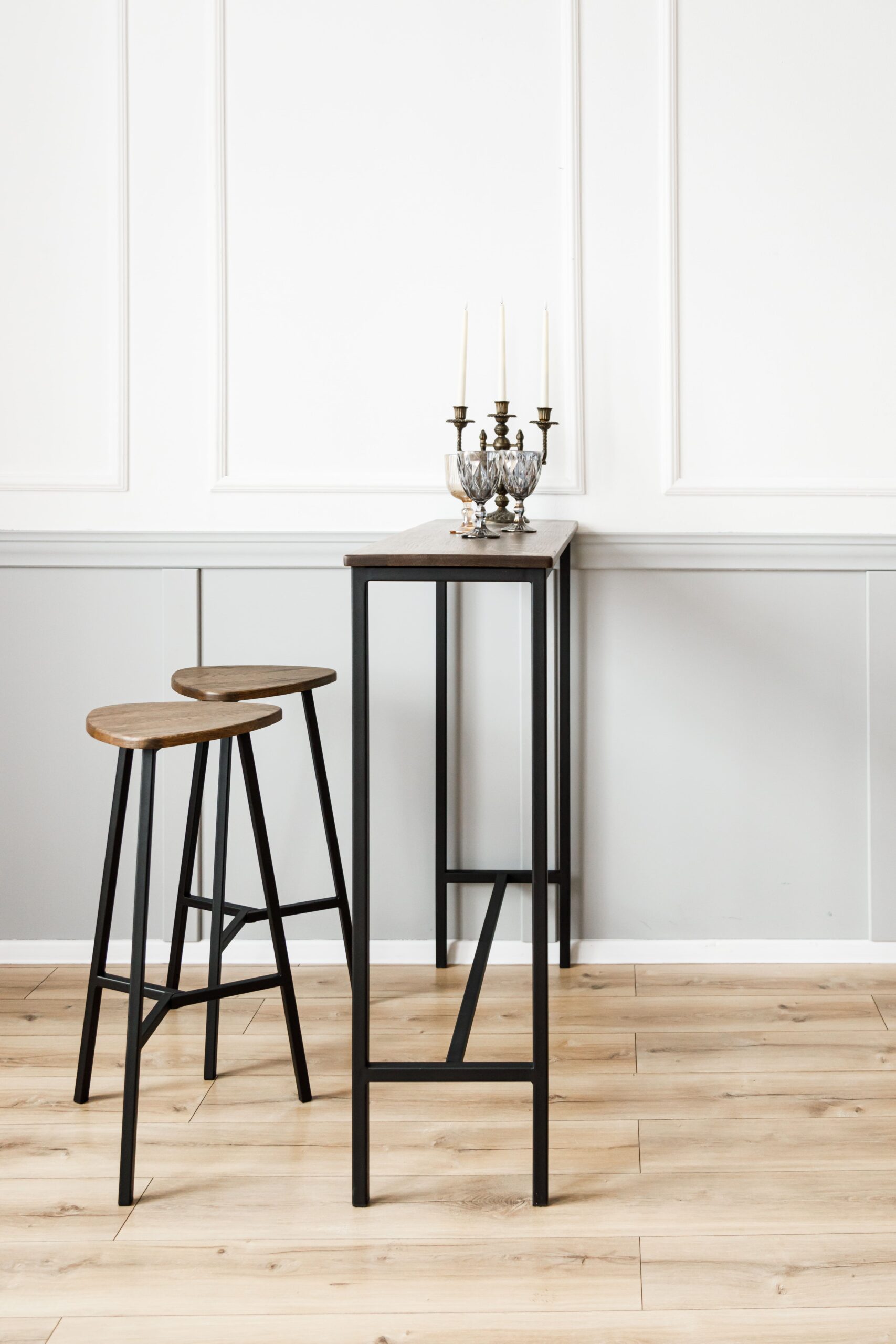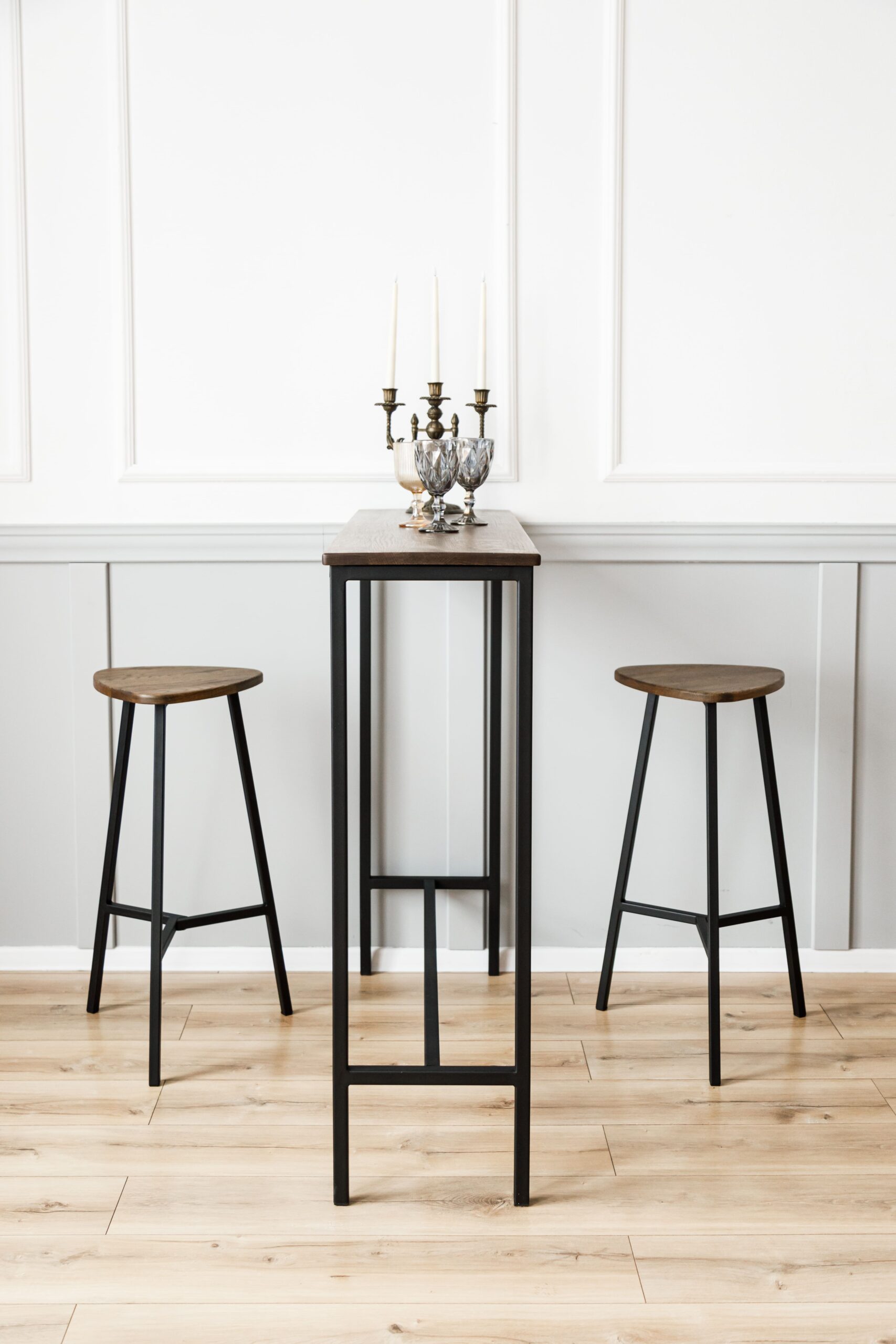 Барный стол отлично вписывается в такие стили как лофт, модерн, современный и скандинавский, подчёркивая индивидуальность и уникальность декора. Наш стол универсален и может использоваться как в домашних условиях на кухне, балконе, в гостиной, коридоре, лоджии, так и в общественных местах, таких как бар, кафе, ресторан, клуб и офис. Столешница из натурального массива дуба – покорит Вас текстурой, запахом дерева и эстетикой.