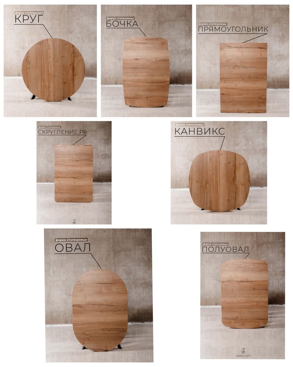Мы предоставляем 7 форм и около 10 расцветок столешниц на выбор; а также 8 расцветок металлических опор.