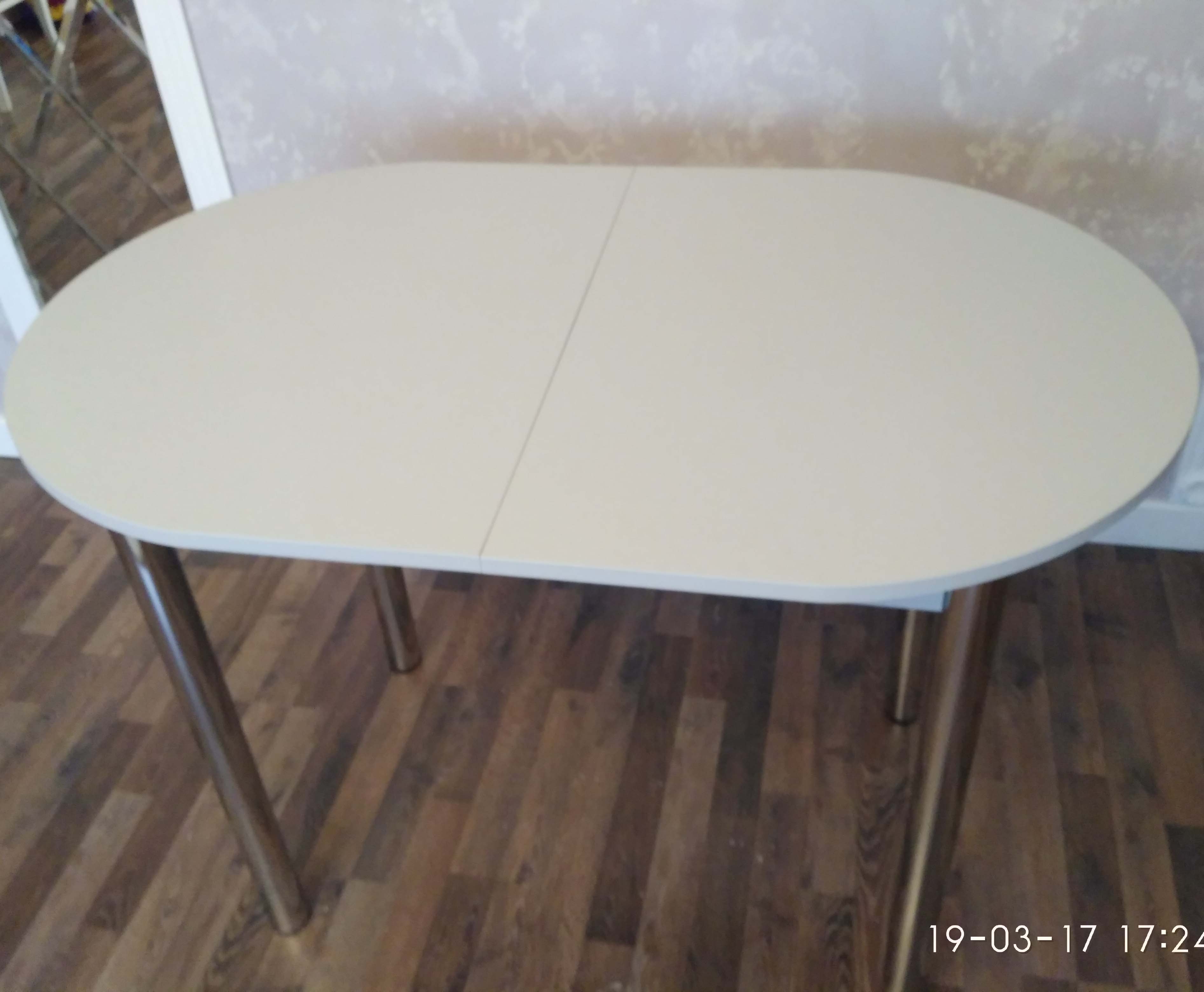 Овальная столешницв стола «Европейский 4» изготовлена из высококачественного пластика бежевого цвета, которая возвышается на очень прочных цилиндрических ножках из металла покрытого хромом. Ножки дополнены пластиковыми заглушками, которые предотвращают повреждения напольного покрытия. Форма стола "Овал".