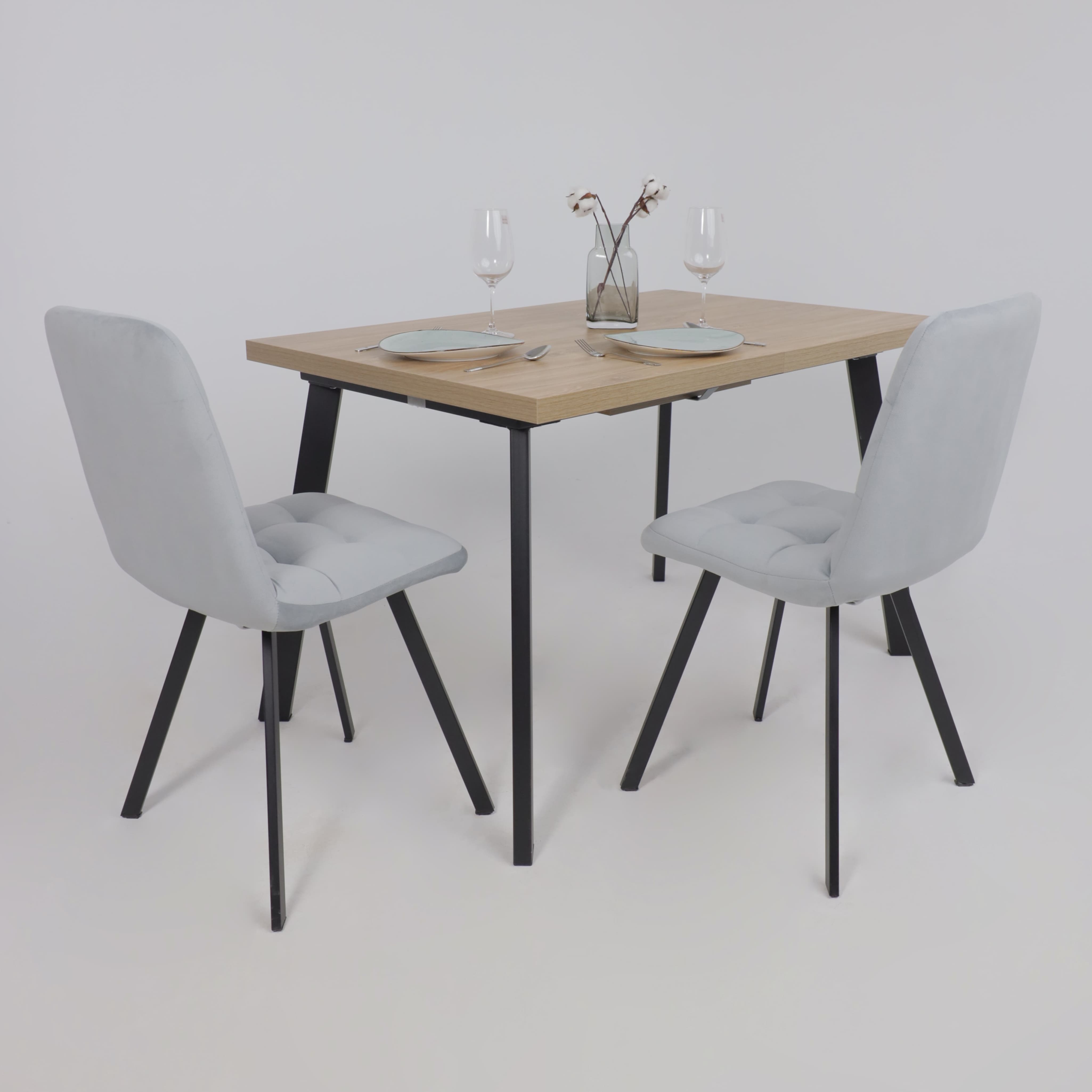 Габариты: 1200(1600)х800х755 мм. Материал: массив ольхи, МДФ облицованная натуральным шпоном дуба.