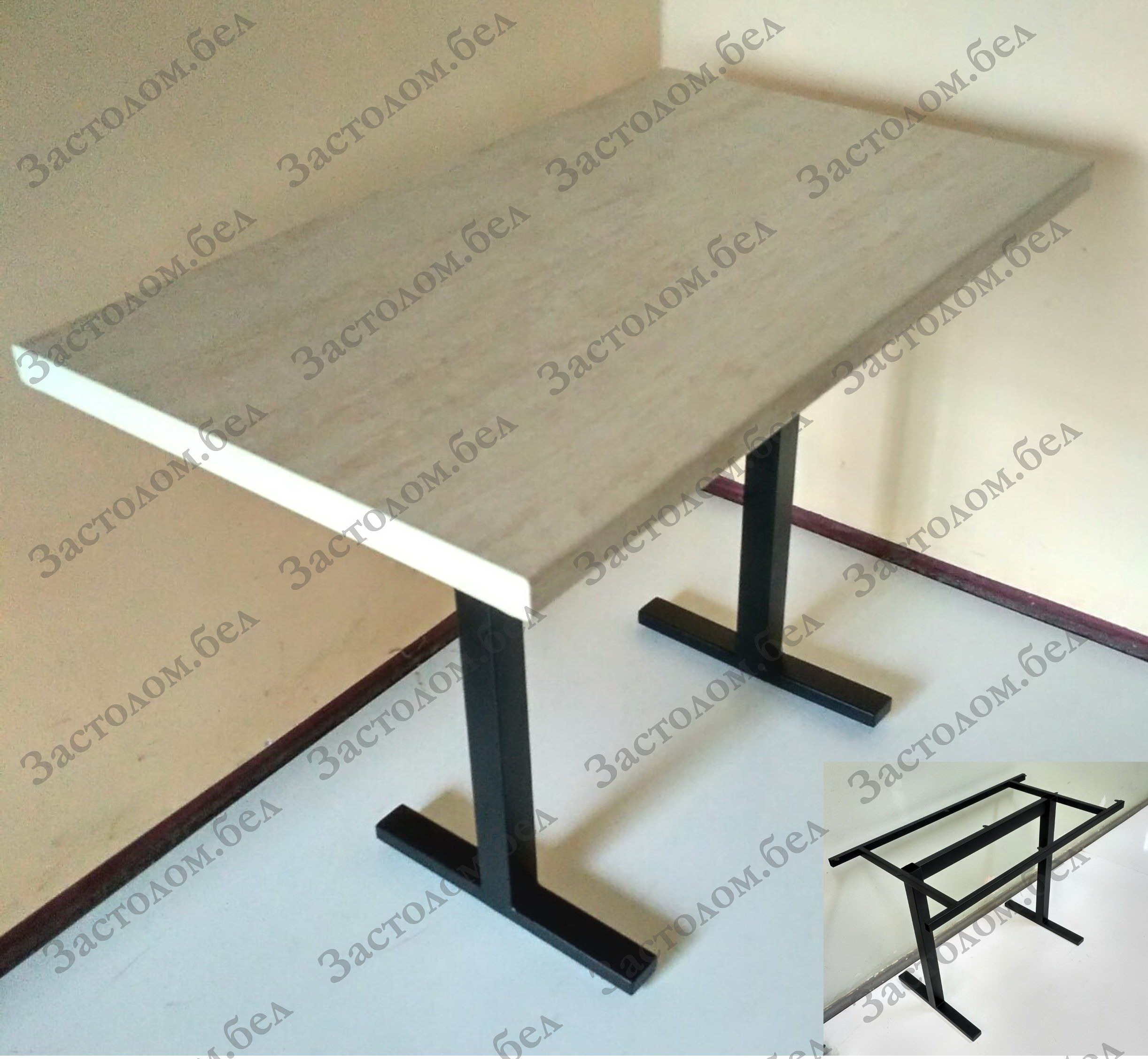 Стол из массива дуба, постформинга или ЛДСП Эггер на цельносварном подстолье серии Н