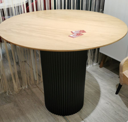 Столешница: шпонированный МДФ с тонировкой. Подстолье: массив дуба. Торцевое разложение.