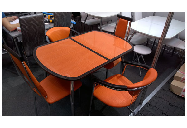 Стол «Касабланка» мягко впишется в любой интерьер, придаст ему элегантность и легкость. Металлические опоры слегка изогнуты и покрыты хромом. Столешница изготовлена из закаленного стекла, возможно множество цветовых сочетаний.