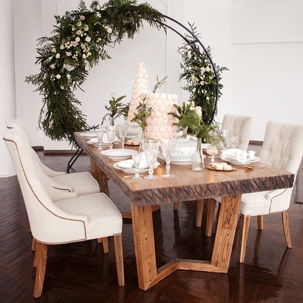 Габариты: 800х800х750 мм. Материал: массив ольхи, МДФ облицованная натуральным шпоном дуба.