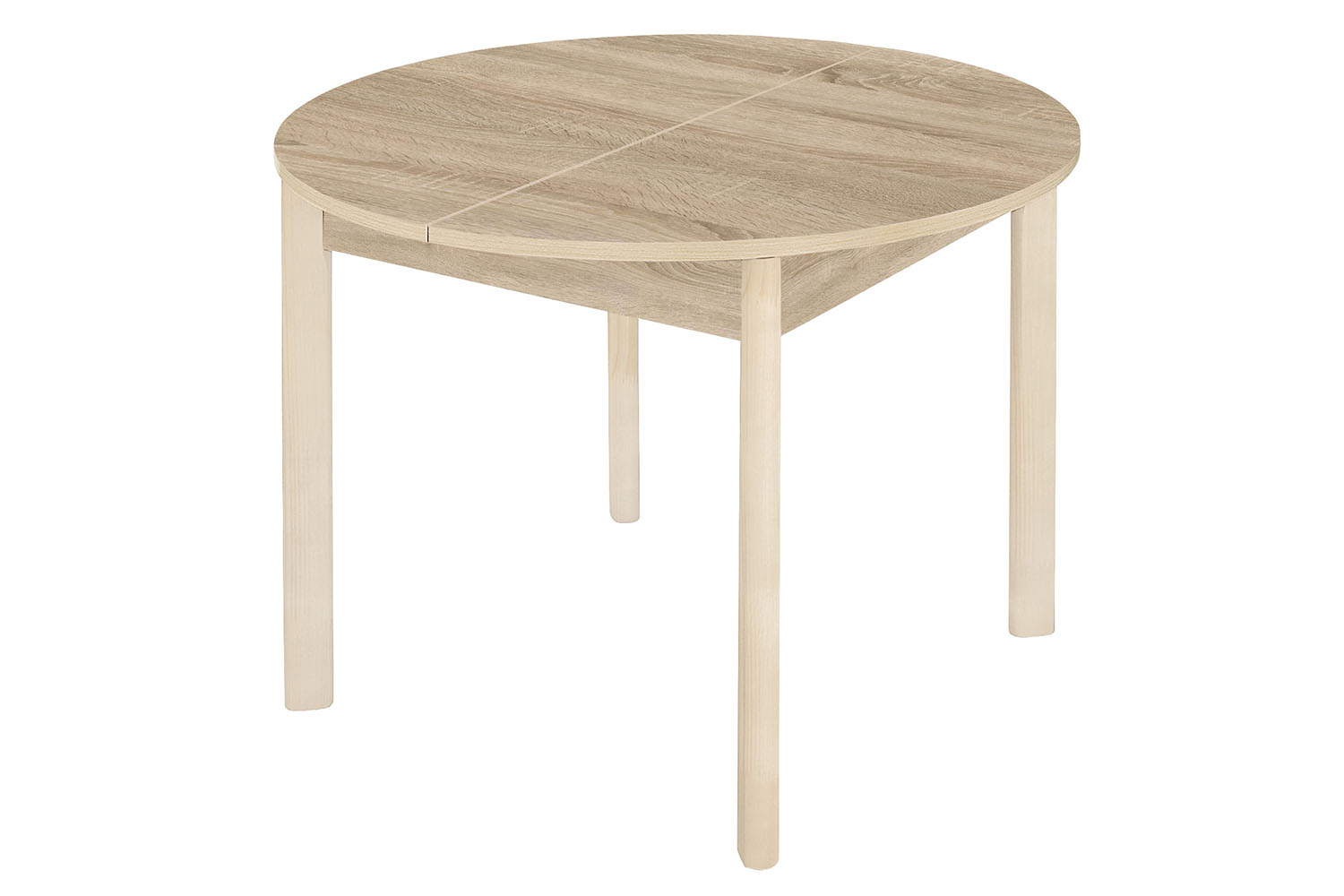 Столешница имеет круглую форму, что позволяет эффективно использовать пространство и создаёт уютную атмосферу. Стол отличается надёжностью и простотой в использовании.