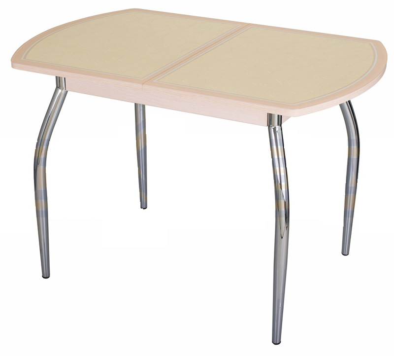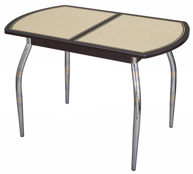 Кухонный стол «Чинзано ПО» выполнен с использованием кожзама. Одной из особенностей модели стали фигурные опоры, покрытые хромом. Предлагается множество вариантов исполнения – в различных цветах, с применением разнообразных декоративных решений.