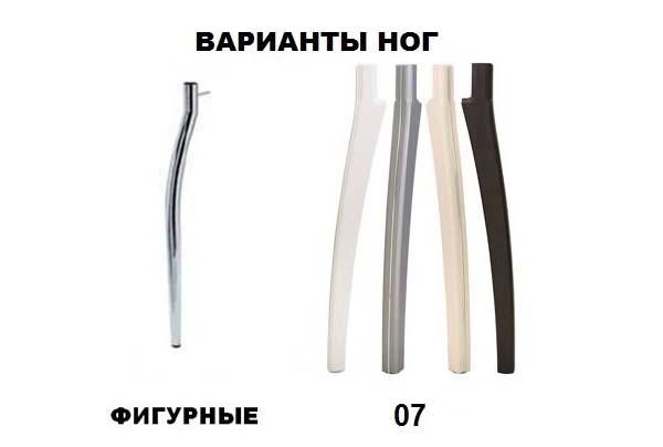 Материал: столешница - ламинированый ДСП + экокожа (кожзам) + закаленное стекло; ноги: металл хромированный (фигурные) либо ламинированный МДФ с металлической вставкой.